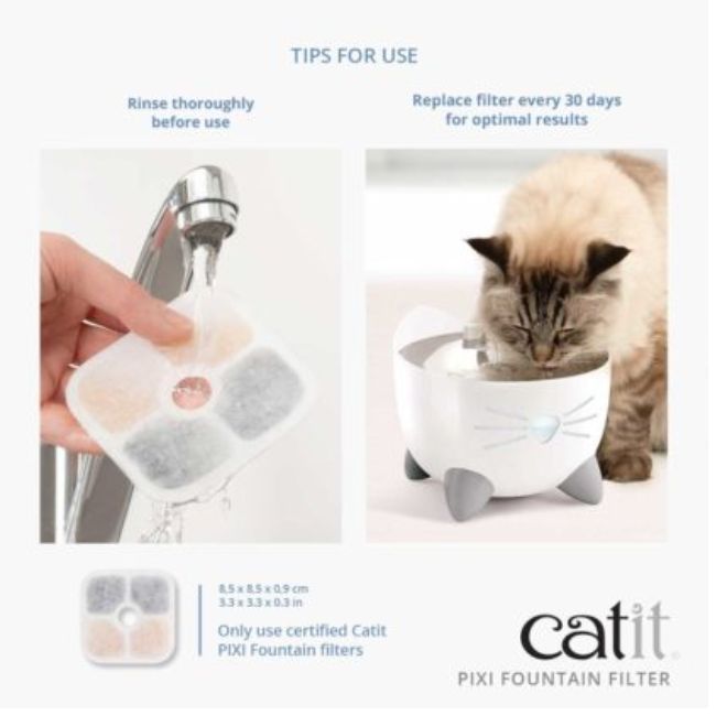Estos filtros están diseñados específicamente para utilizar con los modelos de las Fuentes Catit PIXI. No se pueden usar en otras fuentes Catit ni en imitaciones.