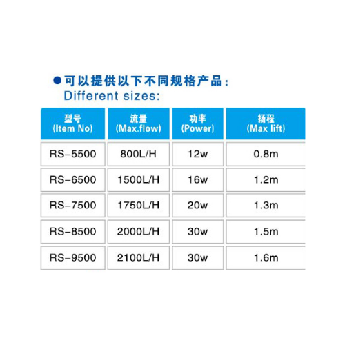 Bomba de 2100L/h. Altura máxima de 1,6m. Potencia de 30w.