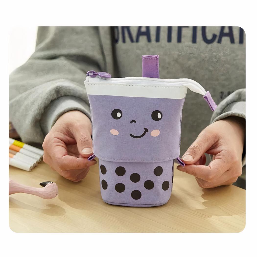 Añada un toque de fantasía a sus artículos de papelería con esta bolsa retráctil con diseño Bubble Tea. Para los fans de la famosa bebida, es un accesorio imprescindible para su bolso. Su diseño retráctil le ofrece una visión más clara del recipiente, facilitando el acceso al accesorio que desee.
