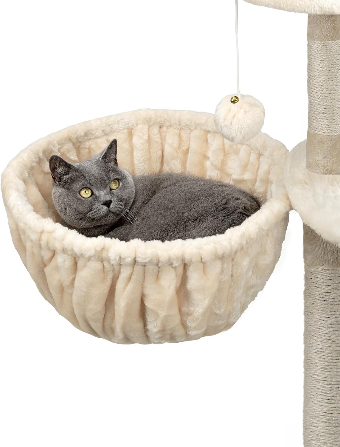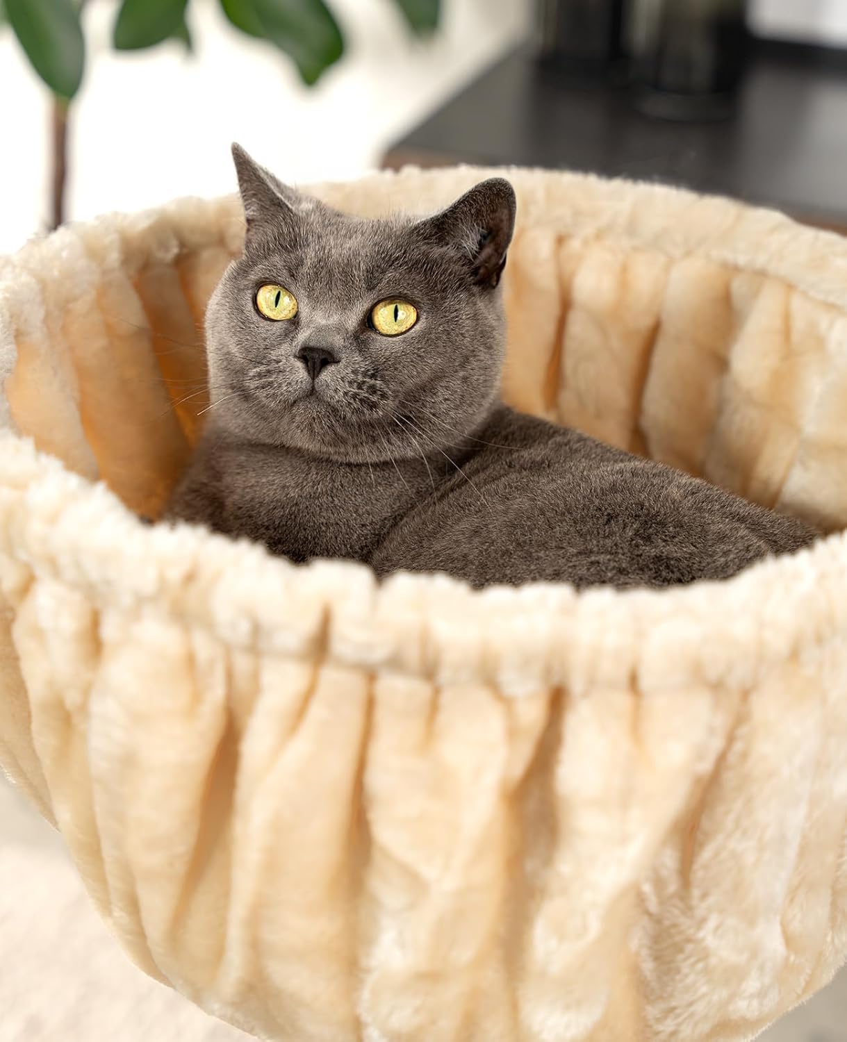 Disponible en un elegante color neutro, esta hamaca no solo destaca por su diseño atractivo, sino también por su resistencia y estabilidad. Con una extraordinaria capacidad de carga, permite que tu gato se mueva y repose con total seguridad. Además, es compatible con roscas M8, lo que la convierte en una opción ideal para complementar cualquier árbol escalador para gatos.