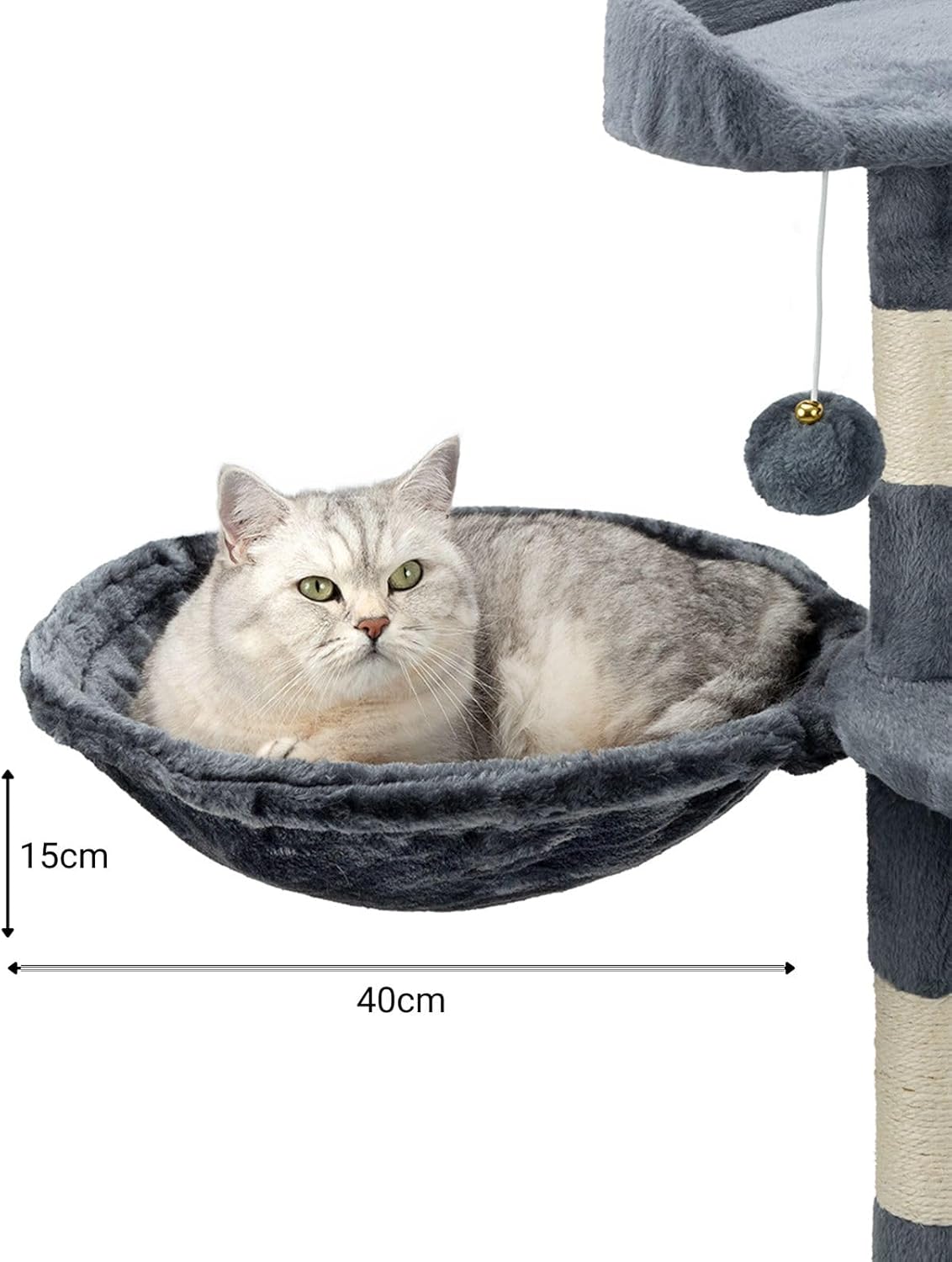 hamaca de felpa suave para gatos: Proporciona a tu gato el descanso que merece con esta hamaca de felpa suave para gatos, diseñada para brindar comodidad y estilo. Con un diámetro de 40 cm y una profundidad de 15 cm, es el lugar perfecto para que tu amigo felino se relaje o disfrute de un sueño reparador. Su textura suave y su elegante diseño se adaptan a cualquier espacio de tu hogar.