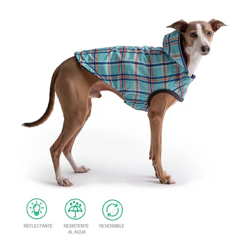 El Impermeable Reversible GF PET™ es un elemento básico del armario. Cuenta con tecnología elasto-fit® para un excelente ajuste; ¡Es impermeable, reflectante y reversible! Con atractivo forro estampado 100% poliéster. Con capucha y exterior 100% poliuretano. Consulte abajo la guía de tallas.