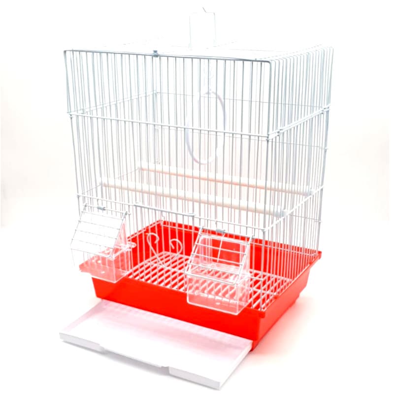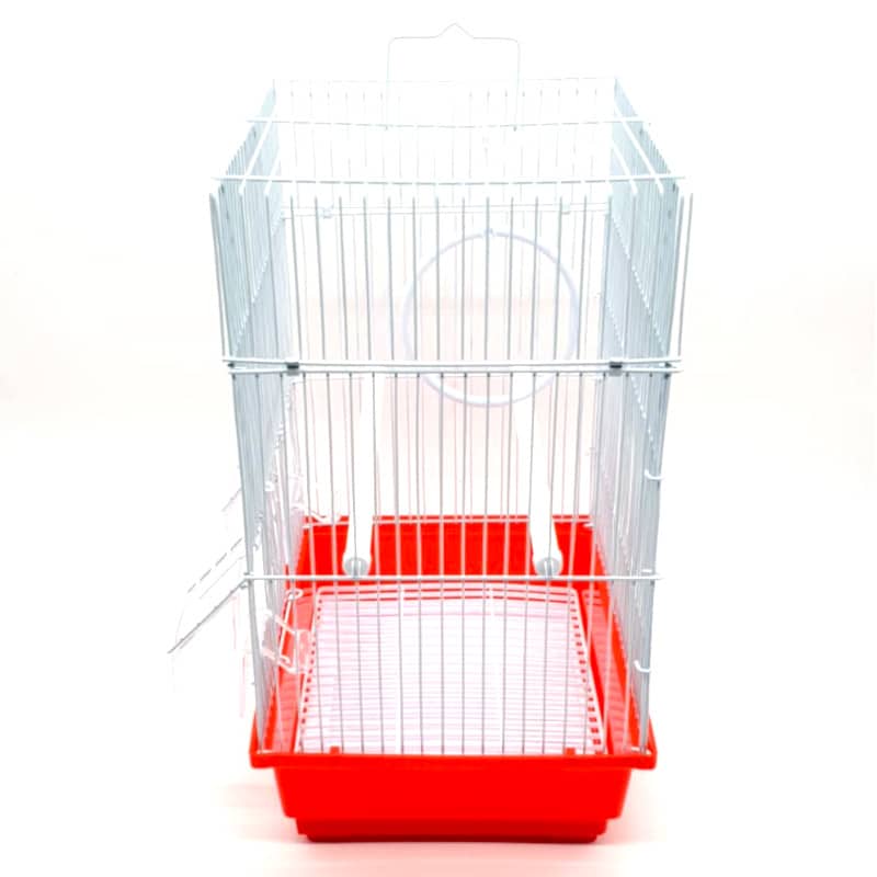 Jaula metálica blanca,con base de plástico en colores alegres .