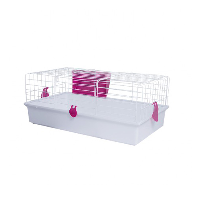 Jaula para conejos básica. Con apertura frontal. Fabricado en España, con pintura epoxi sin plomo y plástico polipropileno, no tóxico.