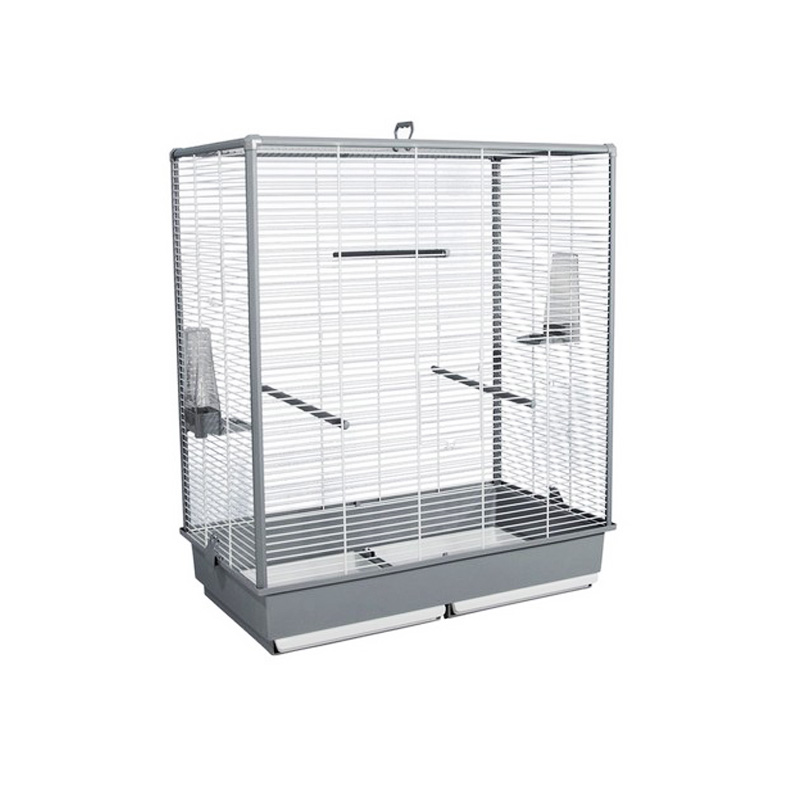 Esta jaula está fabricada en España por la prestigiosa marca Voltregá, con pintura epoxi sin plomo y plástico de uso alimentario, para que nuestra mascota no se intoxique. Se pueden encontrar piezas de recambio y accesorios para complementar la jaula.