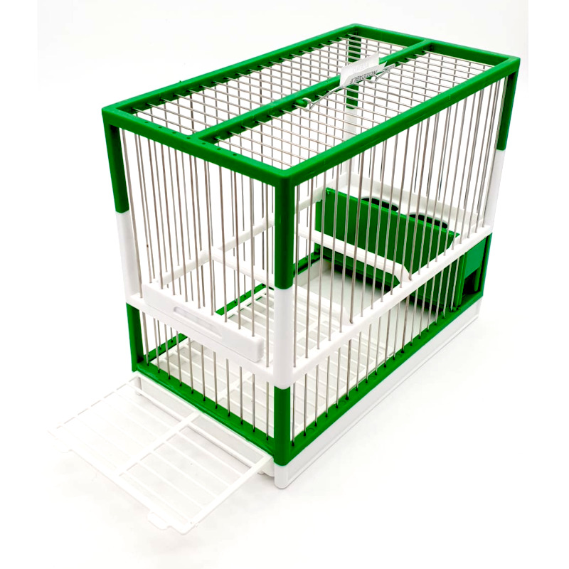 Jaula concurso C2 y canto, en color verde y blanca, perfecta para aves silvestres.