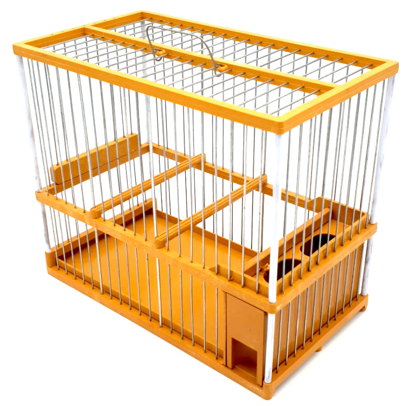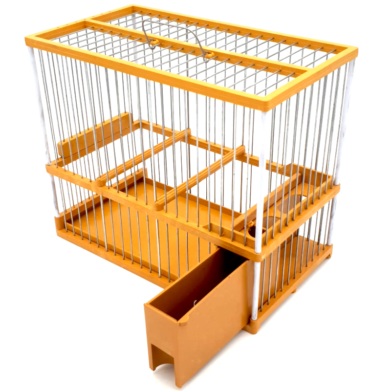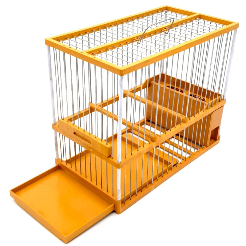 Jaula modelo C2 con varillas metálicas de color Mostaza con una sola bandeja de limpieza.