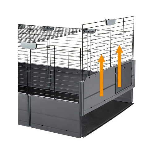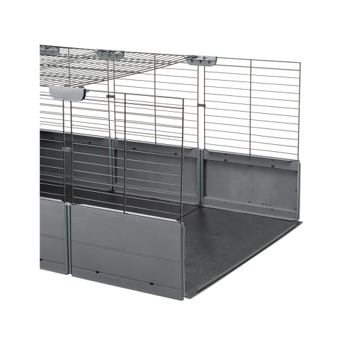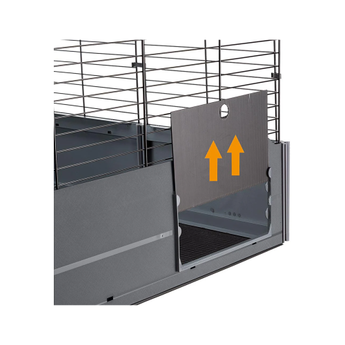 Diseñada para la comodidad y seguridad de los cobayos, la jaula Multipla Open presenta una puerta corredera para permitir la salida del animal. La parte superior está completamente abierta permitiendo llegar fácilmente a todos los puntos del hábitat y facilitar las operaciones de mantenimiento. La base, por último, contiene la suciedad y los residuos de arena evitando que ensucien el suelo.