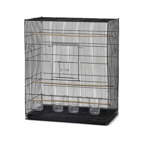 Jaula pajarera para aves grandes. Incluye cuatro comederos internos y tres palos posaderos. Consultar colores disponibles.