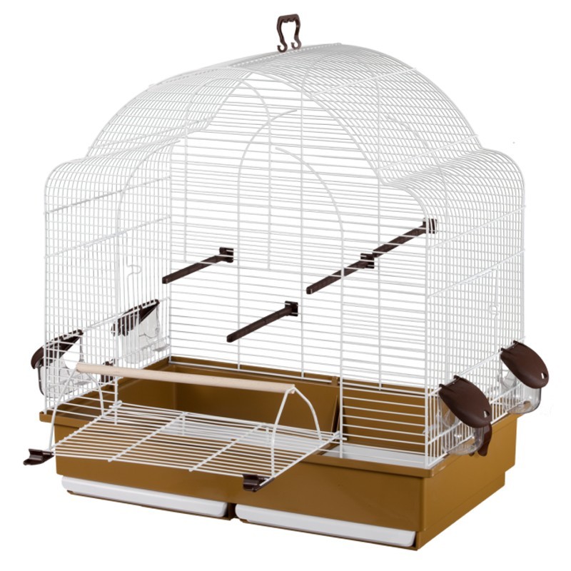 Una jaula amplia ideal para cualquier tipo de ave entre ellas canarios y exóticos. Es una jaula especialmente diseñada para aves papilleras, con una puerta frontal para dejar salir los pájaros.