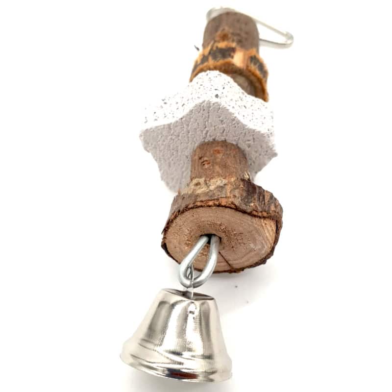 Juego de madera natural con piedra de lava, para disfrute y afilado del pico de su ave.