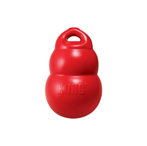 ¡Los perros enloquecerán con el KONG Bounzer™! Fabricado con la clásica forma de KONG y un material liviano, este juguete es perfecto para el juego de buscar y recuperar. El Bounzer™ se comprime y libera aire cuando el perro lo agarra; esto estimula a su mascota a jugar sola. Además, vuelve inmediatamente a su forma original. El asa superior facilita aún más el lanzamiento. ¡Sus perros adorarán saltar, rodar y jugar con estos juguetes gigantes con la forma de KONG!