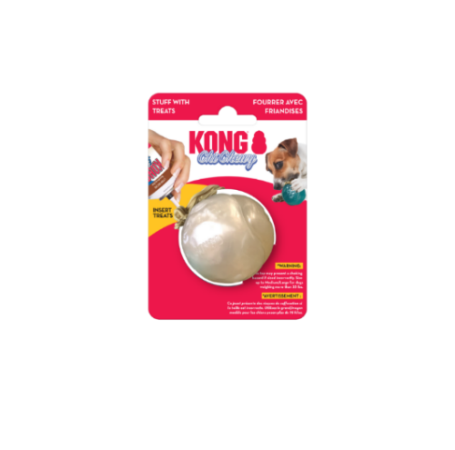 KONG ChiChewy brinda una satisfactoria experiencia de masticado, con ranuras rellenables que recompensan los instintos naturales y ofrecen una experiencia mentalmente enriquecedora. Una textura única prolonga la interacción y el material duradero seguramente hará que las sesiones de juego duren más. La simpática forma aumenta la diversión y hace que este rompecabezas perlado rebote y ruede de manera impredecible, creando sesiones de persecución de larga duración.