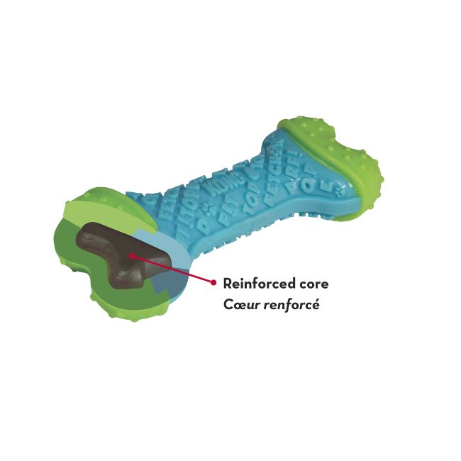 Kong Hueso Core Strength Juguete Dental está fabricado para durar y seguro que aporta emoción, al tiempo que proporciona prolongadas sesiones de juego. El núcleo duradero con múltiples capas elaborado por KONG resiste sesiones de masticación de larga duración, mientras que satisface los instintos naturales de masticación del perro. Las capas reforzadas en el núcleo añaden una resistencia adicional, convirtiéndolo en el juguete ideal para los masticadores potentes. Las palabras con textura del exterior añaden diversión y tienen la ventaja adicional de limpiar la dentadura y las encías. Ideal para el juego en solitario y para actividades de lanzar y recoger interactivas, KONG CoreStrength seguro que será una delicia para los perros más juguetones.