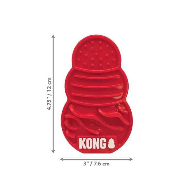 Los pliegues y las ranuras de los KONG Licks sujetan Easy Treat, mantequilla de cacahuete, croquetas, etc. para lamer por más tiempo. Combate el aburrimiento y sirve como una distracción durante exámenes veterinarios, baños y corte de uñas. Además, lamer libera endorfinas que ayudan a que los perros se relajen. Dos ventosas se adhieren a superficies planas para un festín de diversión portátil. Las diferentes formas de las ranuras sujetan alimentos variados, lo que mantiene el interés de los cachorros y ayuda a limpiarles la lengua y los dientes.