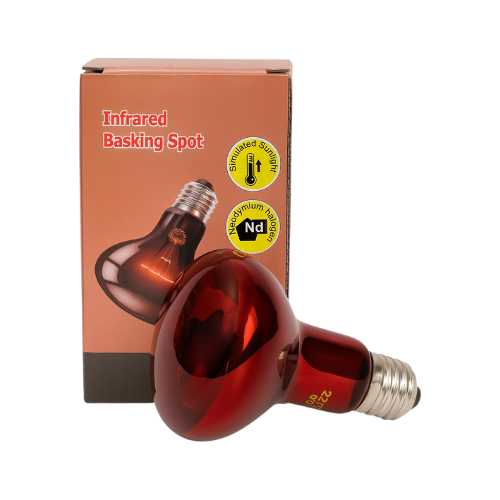 Lámpara calefactora que aumenta la temperatura general del aire en el terrario. El calor es esencial para la actividad y la digestión de los reptiles. Emite ondas de calor infrarrojas que se puede usar las 24 horas. Es ideal para la visualización nocturna y no interrumpe el ciclo de actividad normal de la mascota.