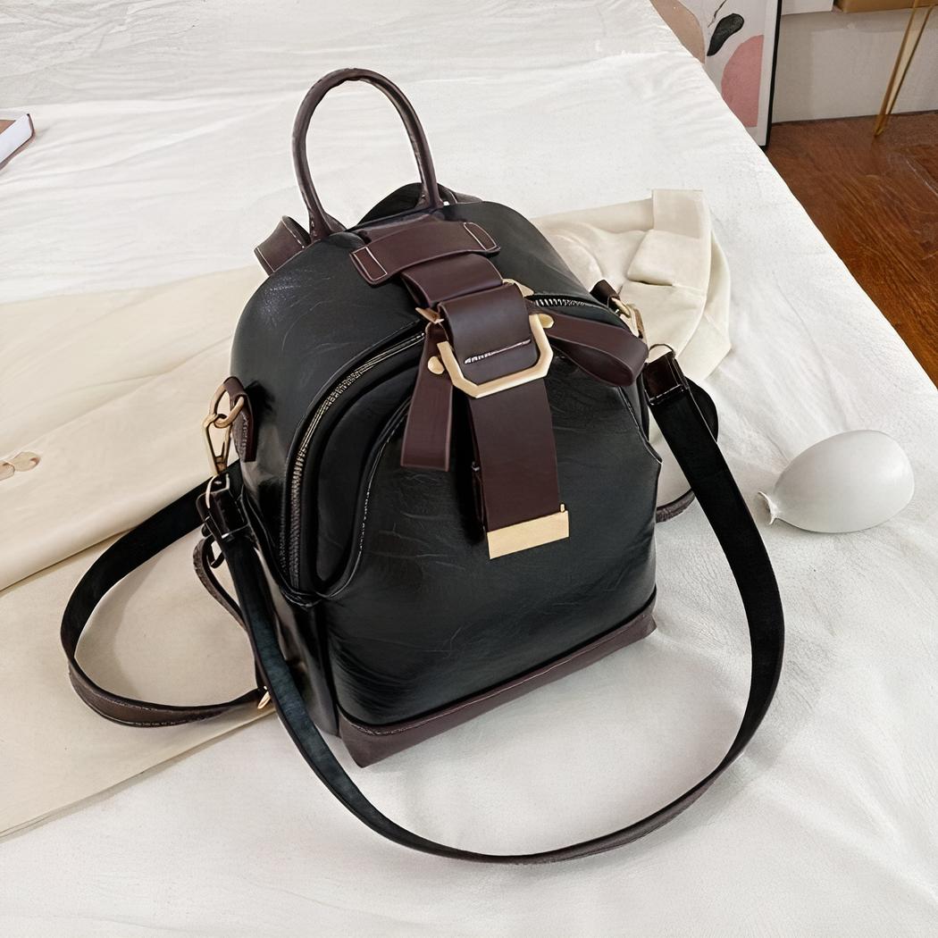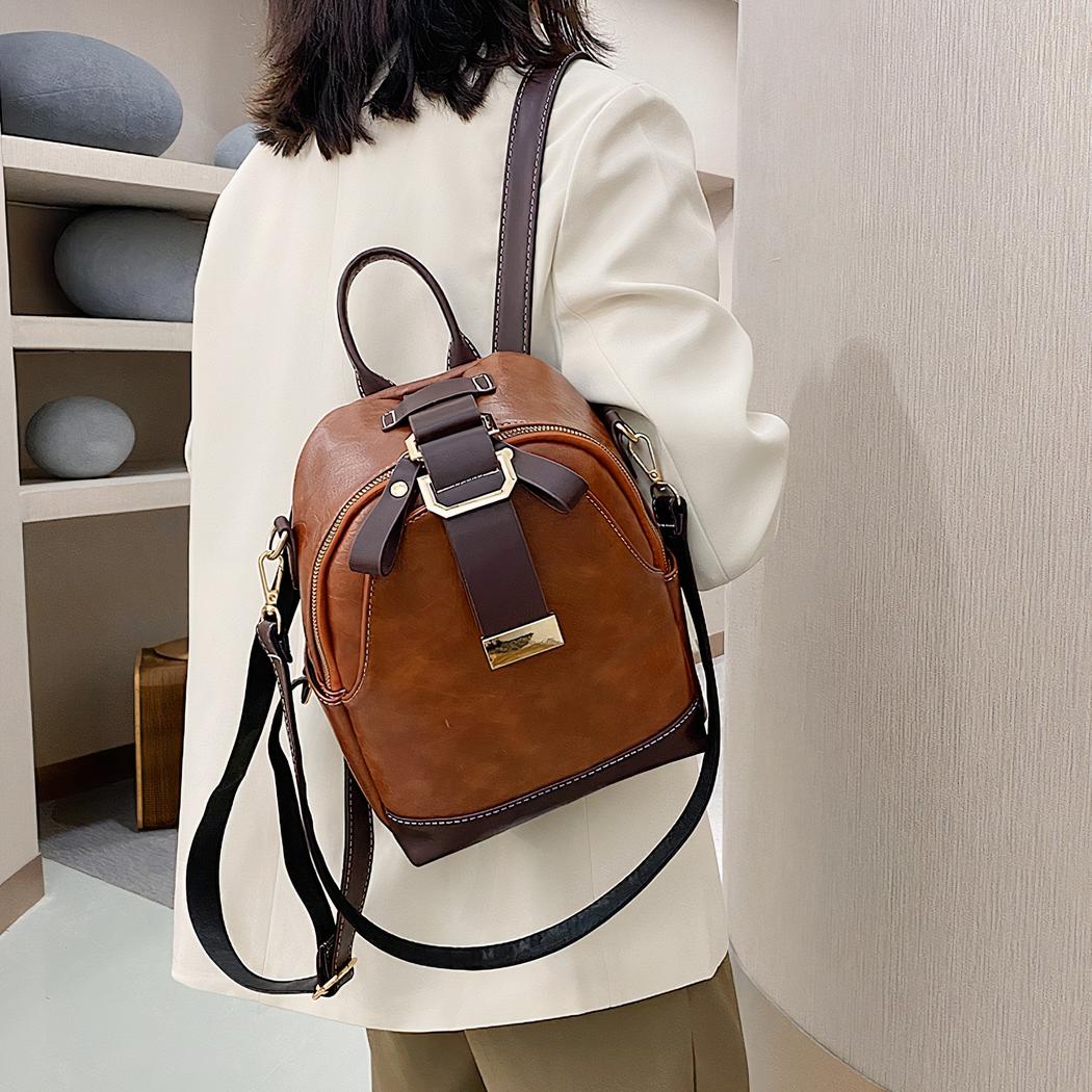 Nuestra mochila con hebilla vintage de piel sintética es una pieza de moda atemporal y única. Está confeccionada en piel sintética de primera calidad, que ofrece una durabilidad y una resistencia a la intemperie excepcionales. Su diseño clásico incluye bolsillos delanteros con cremallera.