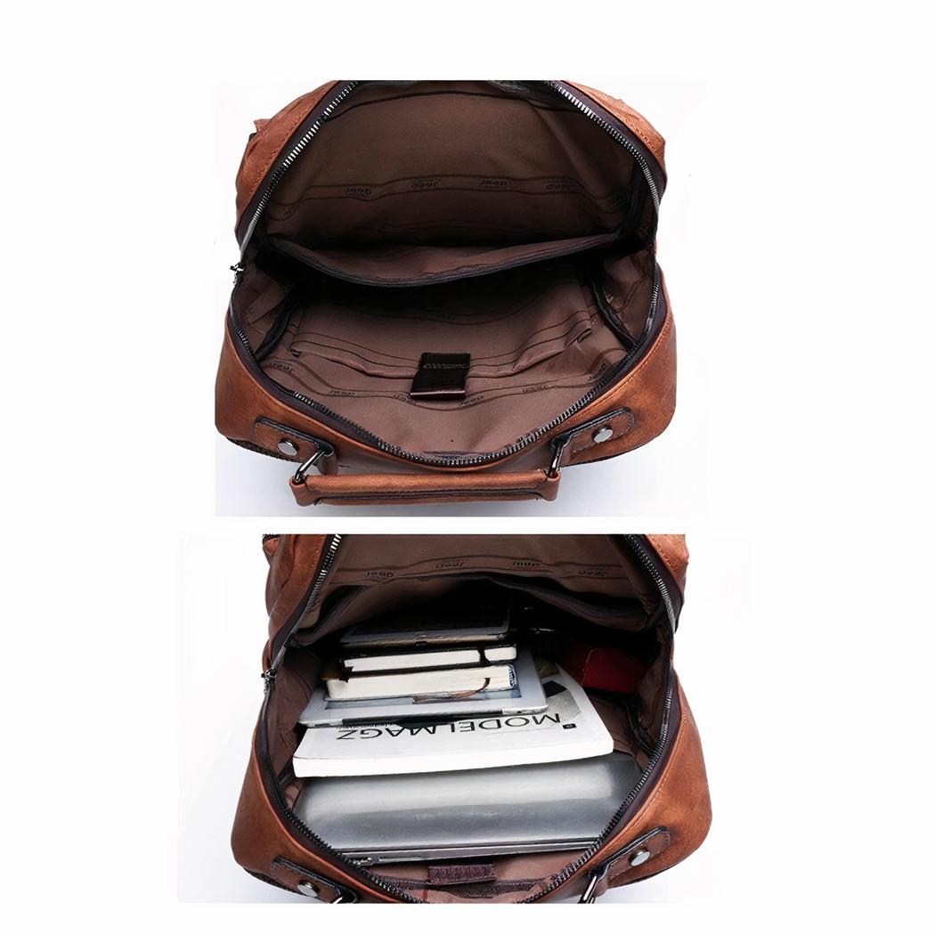 Esta mochila de piel de diseño para hombre completará un look chic y elegante. Esta práctica bolsa le acompañará a la universidad o a la oficina allá donde vaya. PC, tableta, documentos varios… podrá guardarlo todo en su compartimento principal y en su gran bolsillo trasero.