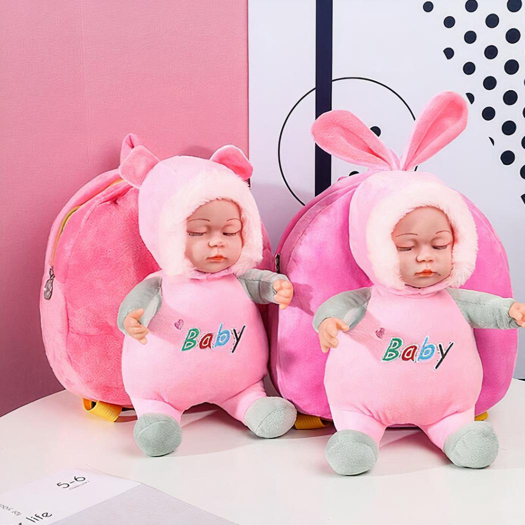 ¡Esta mochila de peluche con muñeco es original y única! En la parte delantera aparece un simpático bebé que seguro encantará a su niño o niña. Será su nuevo compañero en casa o en la guardería. Muy suave, esta mochila le resultará cómoda de llevar.