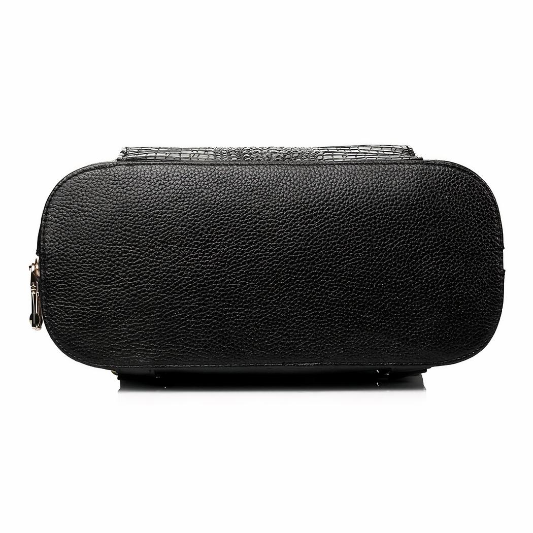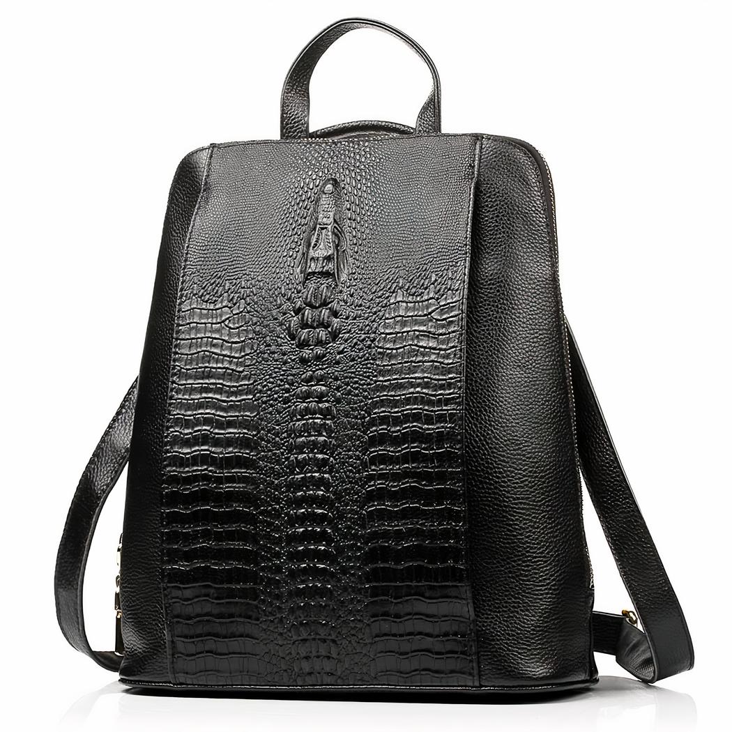 Nuestra mochila para mujer en polipiel con estampado de cocodrilo es una pieza atemporal que encajará perfectamente en su armario. Su diseño elegante y sofisticado se ve realzado por un sutil estampado de cocodrilo, que le da un toque de lujo.