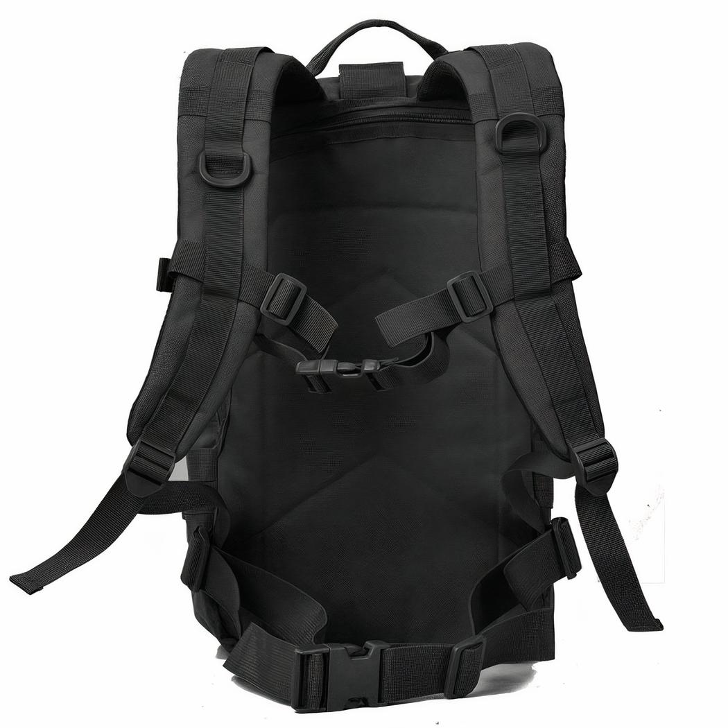 Esta mochila de senderismo de estilo militar le dará un aspecto guerrero y le acompañará en todas sus aventuras Su sobrio color negro combinará fácilmente con todos sus atuendos, haciéndola atemporal. Tiene muchos bolsillos para que pueda guardar fácilmente todo su equipo.
