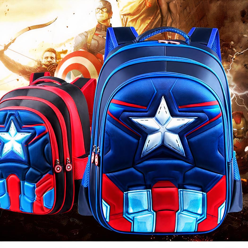 La mochila del Capitán América para niños es exactamente lo que su hijo necesita para sentirse como su superhéroe favorito. Perfecta para la vuelta al cole, está fabricada en nailon y luce el símbolo y los colores del héroe de Marvel.