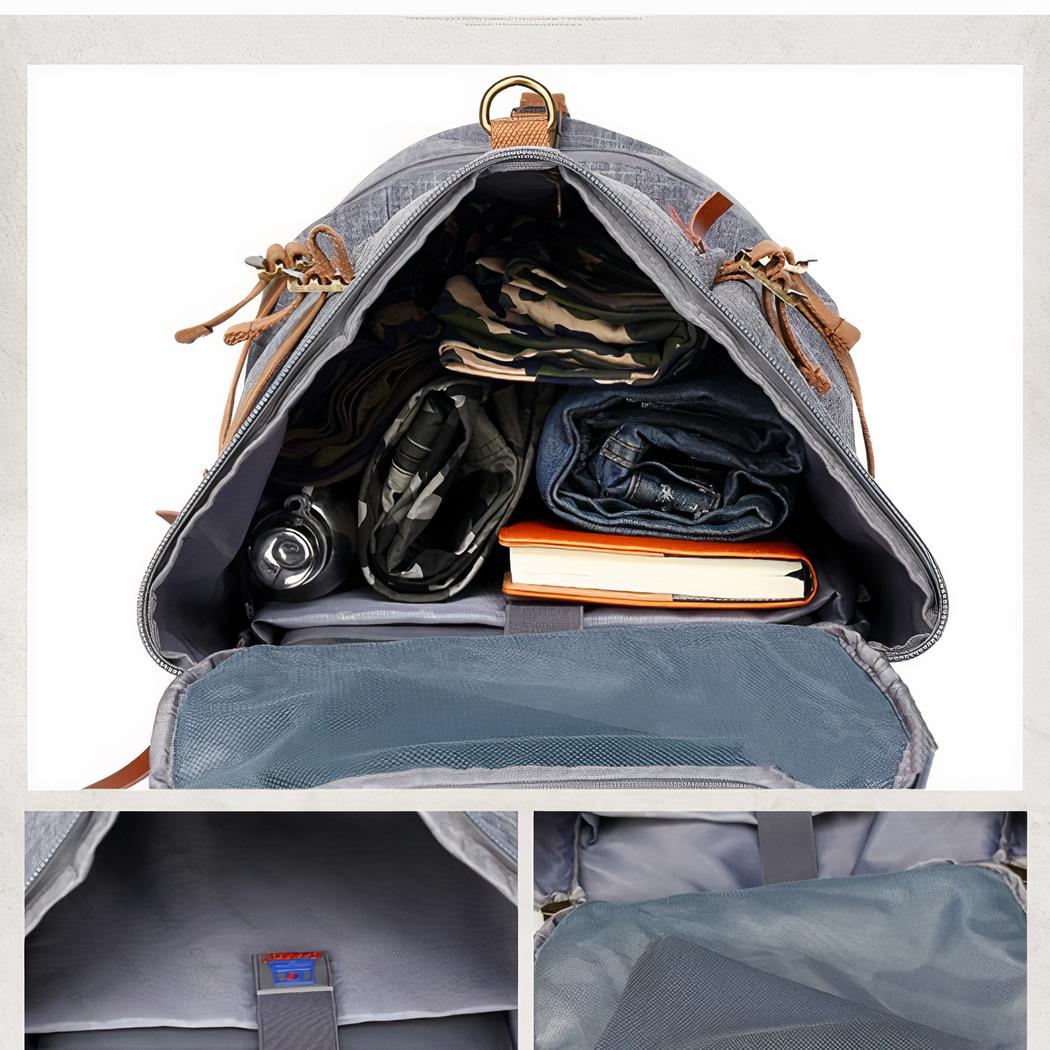 Descubra esta amplia y práctica mochila militar de 50L para hombre. Le encantará llevarla en la ciudad o en sus salidas al aire libre. Fabricada íntegramente en nailon con forro de poliéster. Dispone de numerosos compartimentos de almacenamiento internos y externos independientes.