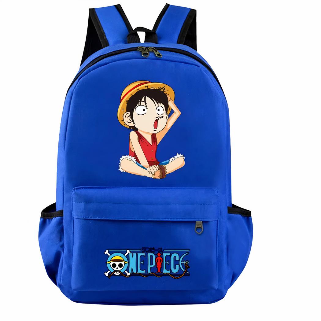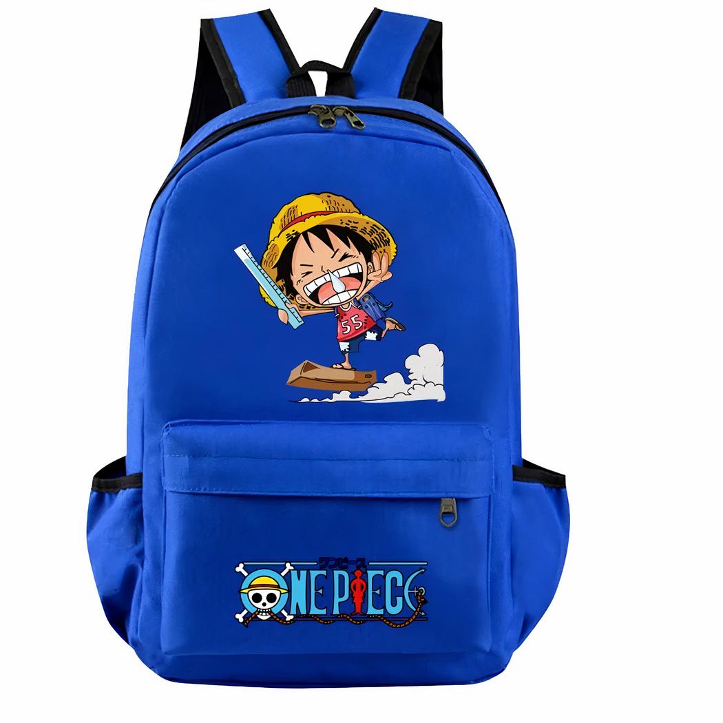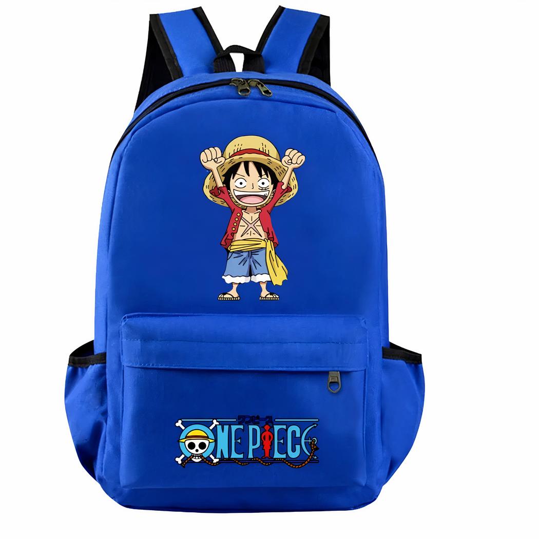 Lleve a su hijo a la aventura con esta mochila azul oscuro de One Piece. Con un diseño de Monkey D.Luffy, es perfecta para los jóvenes fans de la famosa serie de animación. Sus amplios compartimentos y las correas acolchadas para los hombros ofrecen estilo y comodidad para ir al colegio o de viaje.