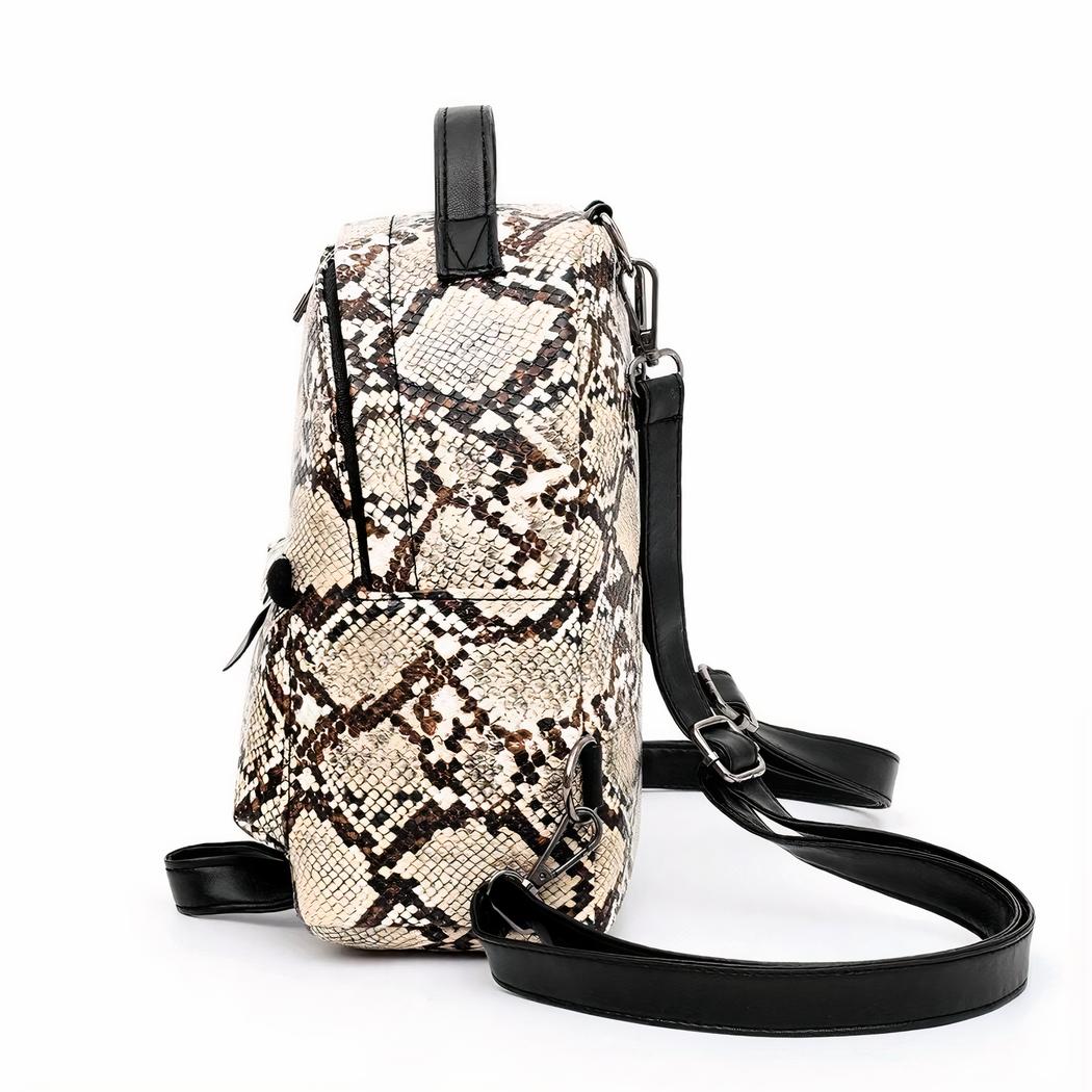 Mochila pequeña con estampado de serpiente para mujer