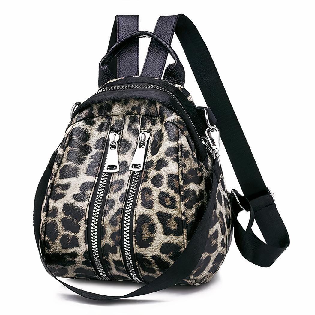 Descubra nuestra pequeña mochila para mujer con estampado de leopardo, perfecta para esos días en los que necesita llevar unos pocos artículos esenciales. Su tamaño compacto la convierte en la compañera ideal para los viajes diarios. Con su estampado de leopardo, añade un toque femenino a su look.