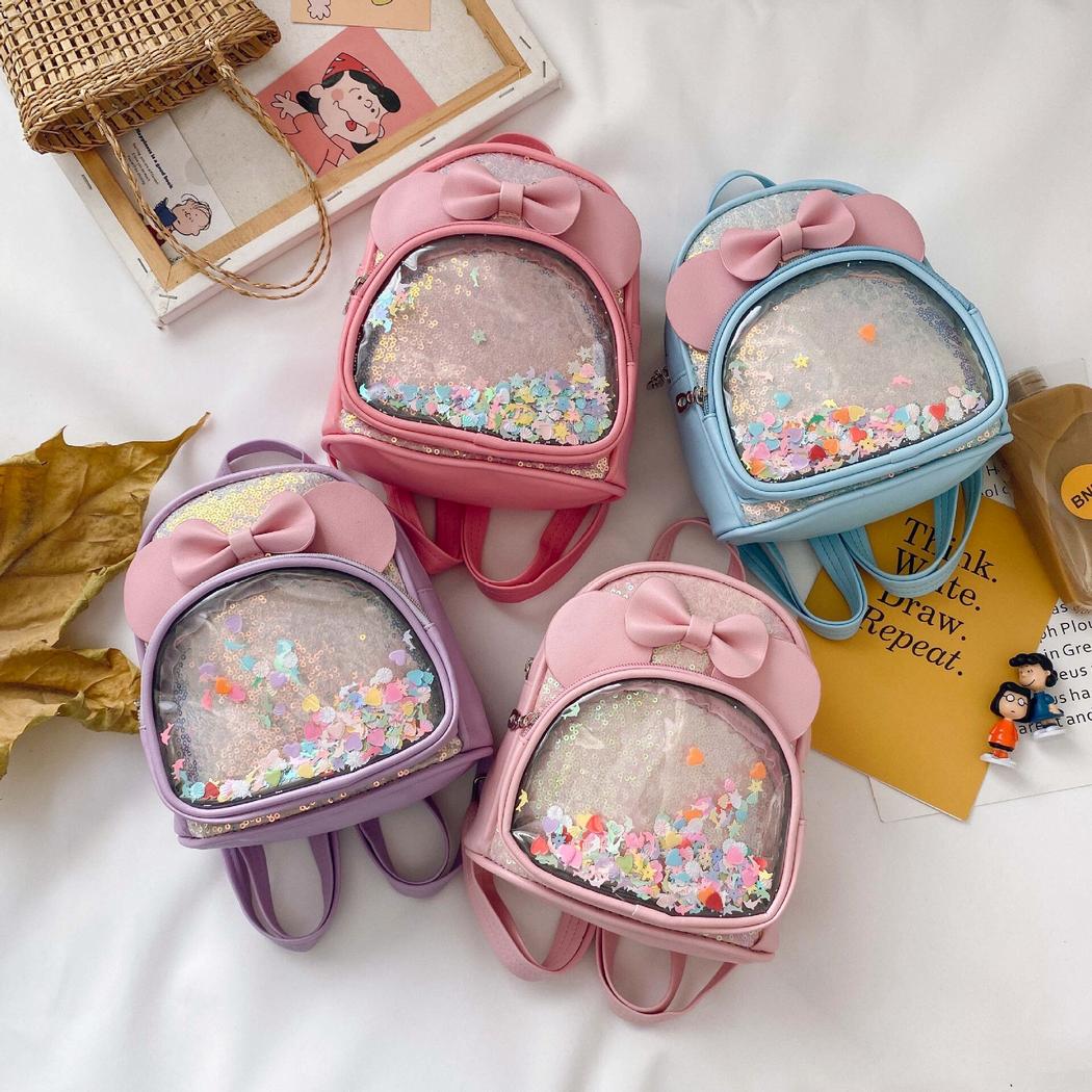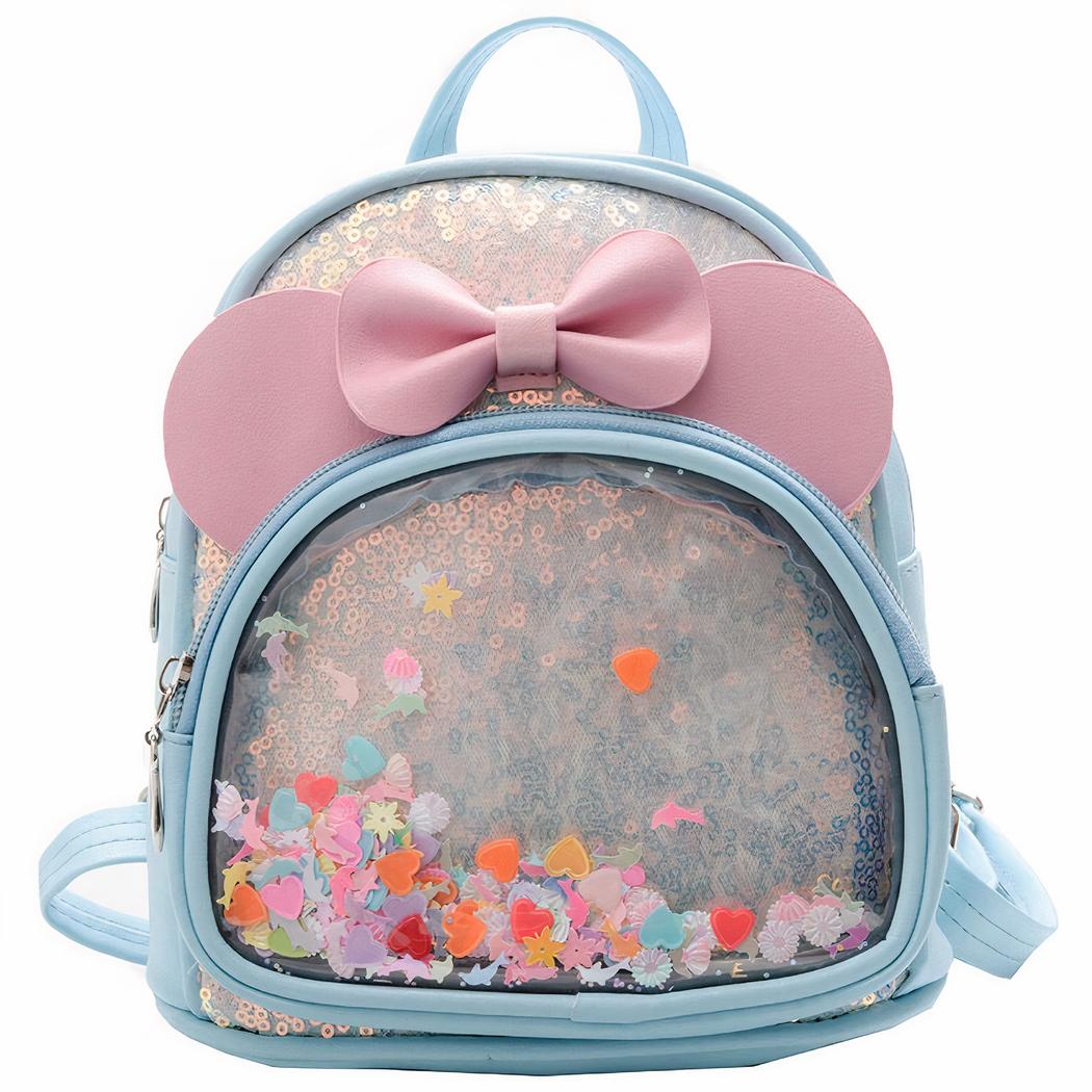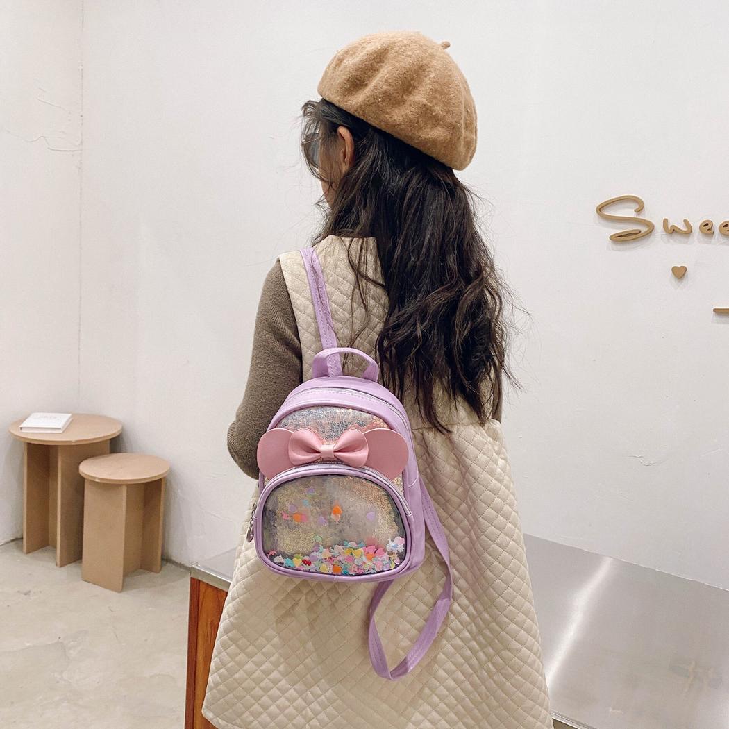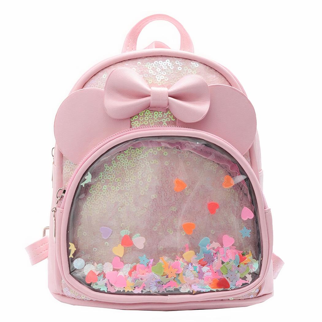 ¿Busca una mochila pequeña para su princesita? Enamórese de esta mochila de niña con lazo. Una bonita mochila con bolsillo transparente y lentejuelas. Ligera, esta mochila de piel sintética es un accesorio de moda.