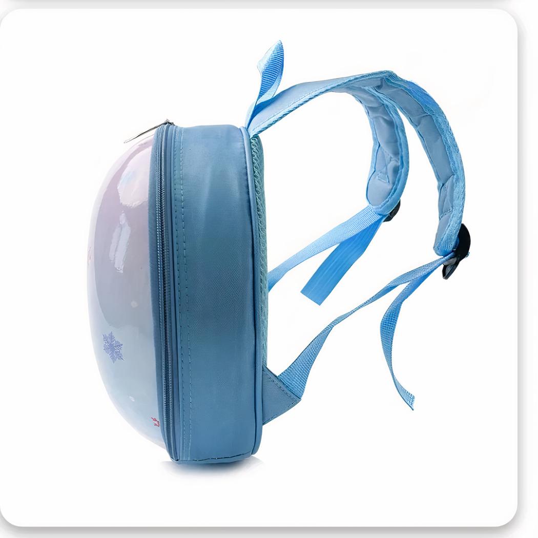 Sumérjase en el mundo de cuento de hadas de la maravillosa Elsa con esta pequeña mochila redonda infantil de Frozen. Disponible en azul, rosa o morado, es única en su especie y encantará a las niñas con su forma de cáscara de huevo.