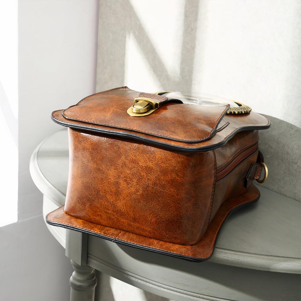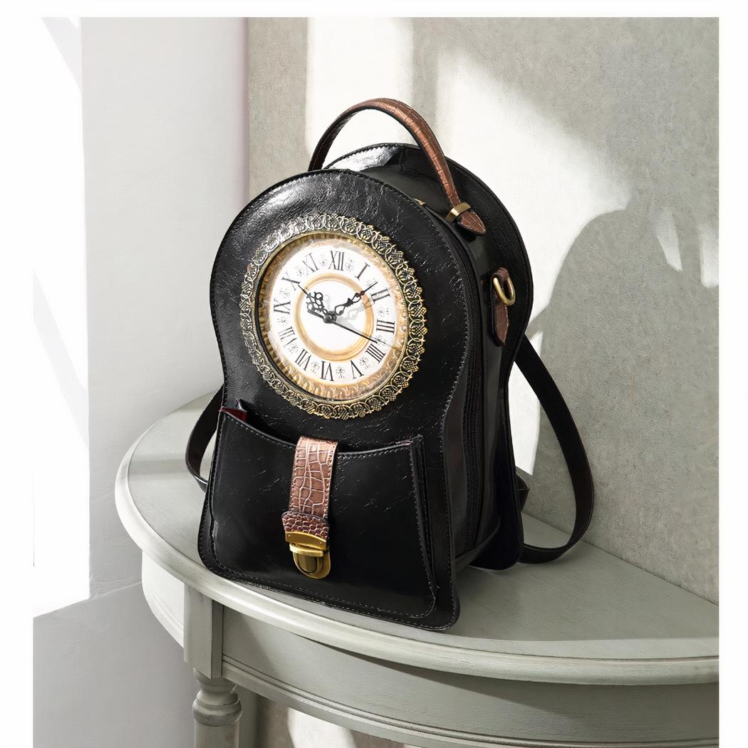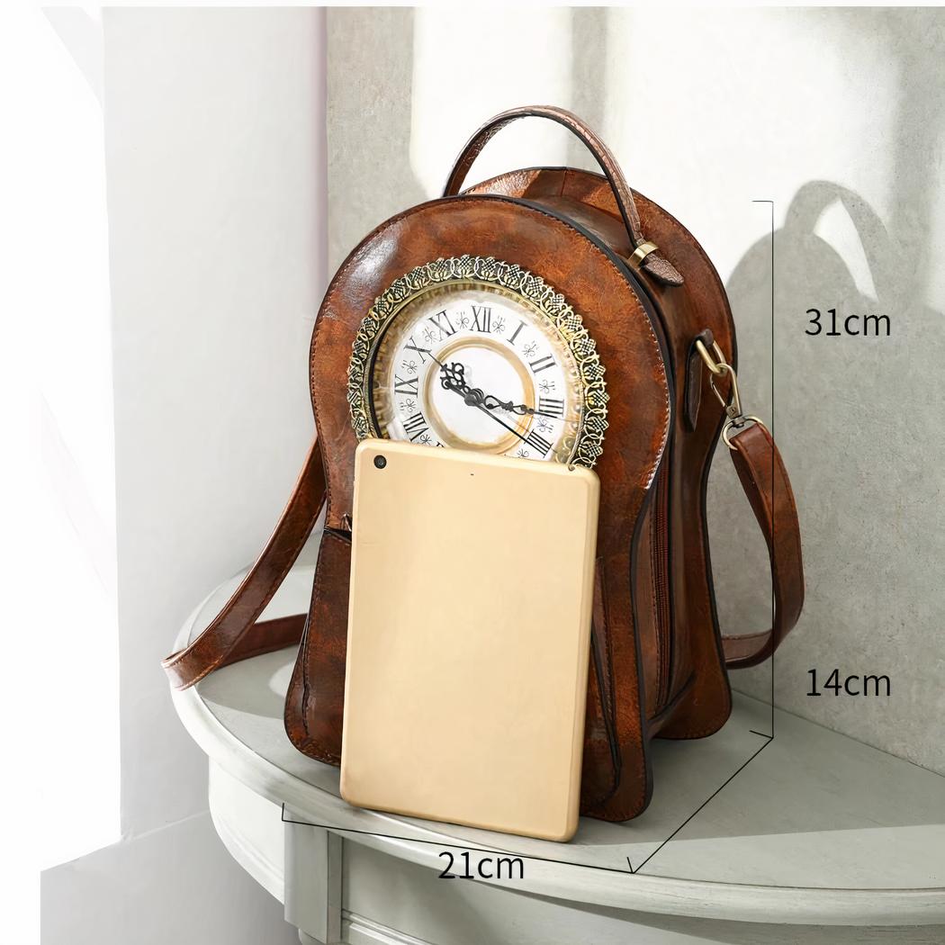¡Viaje en el tiempo con esta mochila vintage de cuero de relojería! Disponible en rojo, negro y marrón, elija la que más le guste. Su forma original, sus detalles dorados y su reloj antiguo de aspecto real la convierten en una bolsa única ¡llena de encanto!