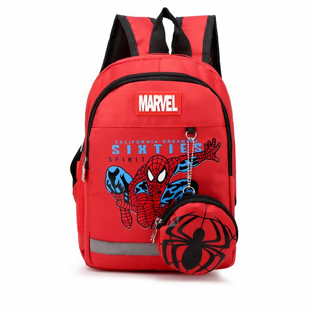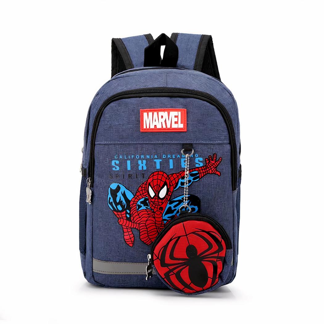 Descubra nuestra mochila efecto tejano Spiderman. Es la mochila ideal para su hijo, un gran fan de Spiderman. Podrá llevarla al colegio o jugar al aire libre con sus amigos. En la parte delantera de la mochila hay un pequeño monedero con la imagen del superhéroe.