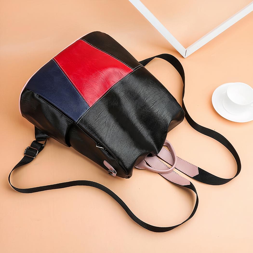Esta lujosa mochila tricolor para mujer es perfecta para cualquier ocasión. Su diseño único y atrevido combina tonos brillantes y elegantes para complementar cualquier estilo. Además, incorpora una correa para el hombro que permite llevarla con comodidad y libertad de movimientos.
