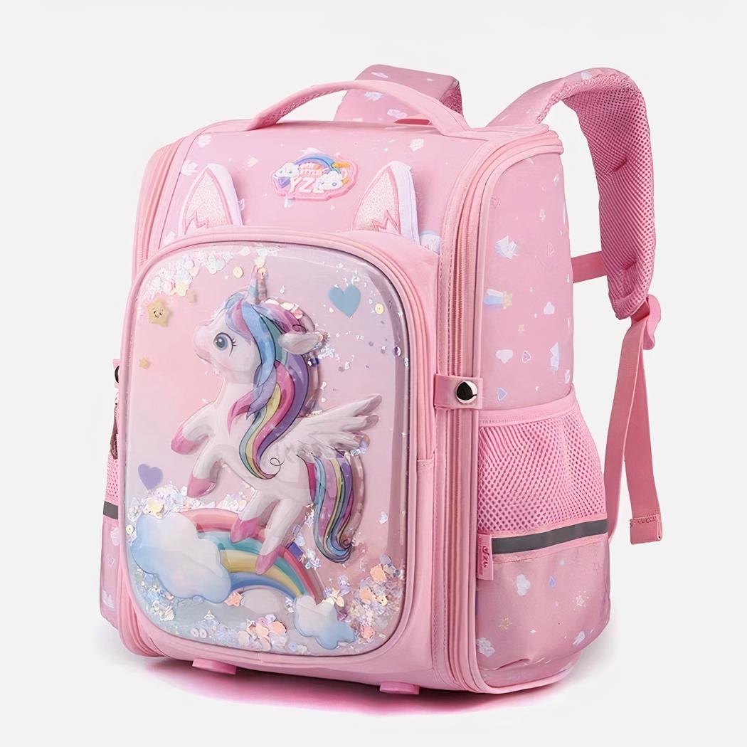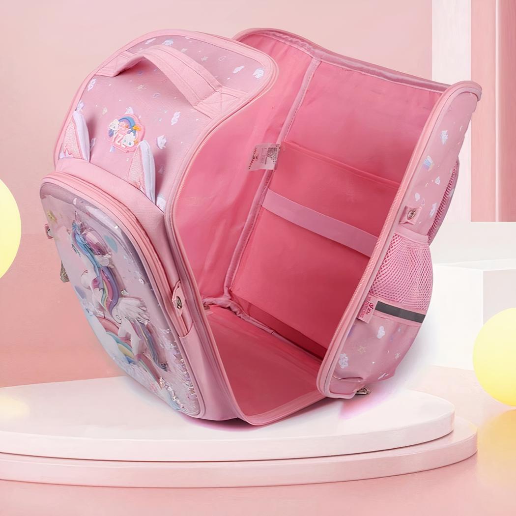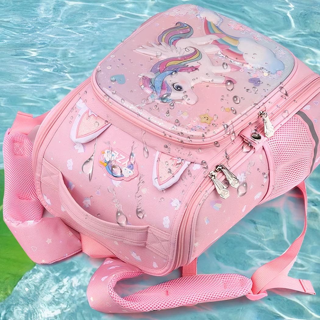 Esta mochila de unicornio con motivos de bolsillos en relieve se convertirá en un accesorio imprescindible para su hija. Gracias a su abertura ergonómica, no hay riesgo de que dañe sus libros de texto y cuadernos. Su revestimiento impermeable y antitranspirante hace que el día a día sea más fácil y cómodo.
