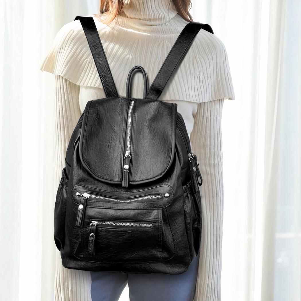 Esta bonita mochila vintage con cremallera de polipiel le acompañará en todas sus salidas y pronto se convertirá en un imprescindible de su armario. Sus numerosos bolsillos le dan un aspecto moderno y le facilitan el almacenamiento de todas sus cosas para que pueda llevarla a todas partes