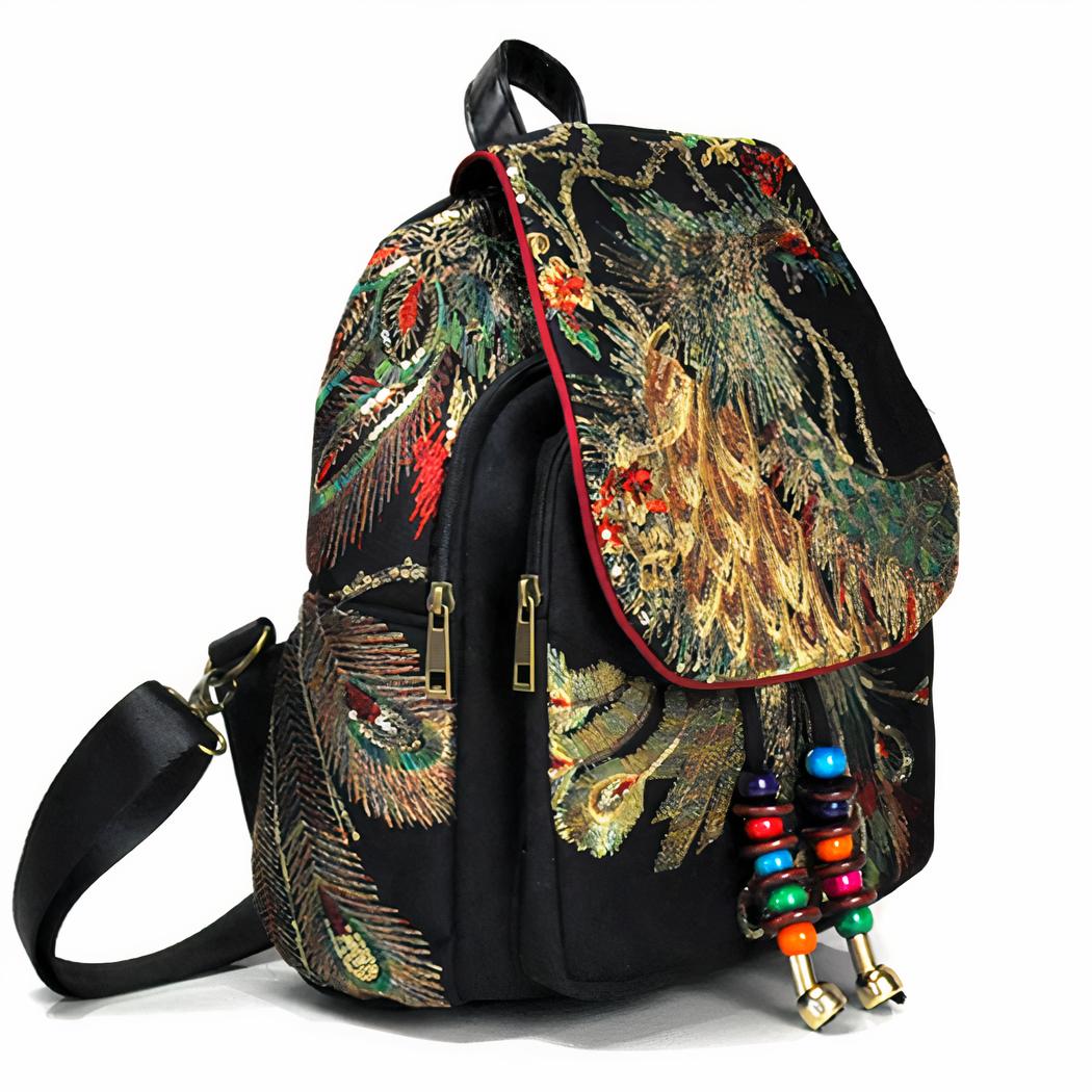 Esta mochila vintage de lentejuelas para mujer es una maravilla deslumbrante. Confeccionada en tejido bordado brillante sobre fondo negro, está adornada con brillantes lentejuelas. Su cordón, adornado con cuentas multicolores, añade un toque juguetón. Perfecto para un estilo único y chispeante.