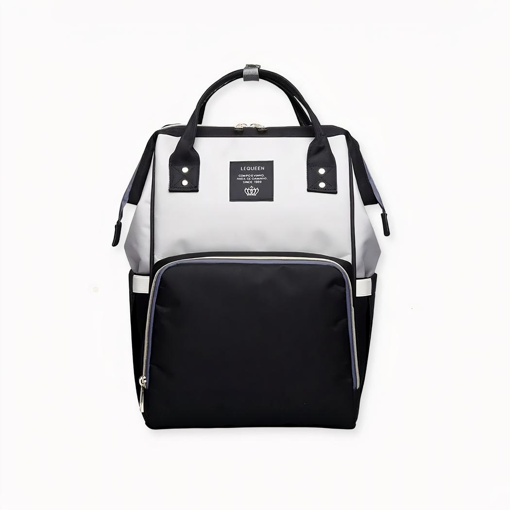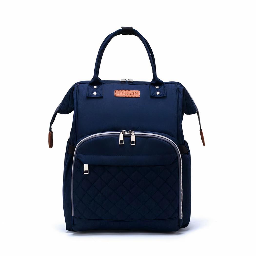 Una moderna y elegante bolsa cambiador acolchada para padres a la moda. Esta práctica mochila tiene muchos bolsillos y es impermeable. Tiene un bolsillo exterior para toallitas con una pequeña ranura para que pueda sacarlas directamente del bolsillo.