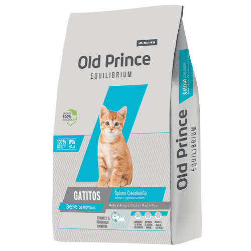 Old Prince Equilibrium Pollo y Arróz para Gatitos: ESTE ALIMENTO FAVORECE EL DESARROLLO COGNITIVO. Además, con el agregado de DHA, un ácido graso esencial de la serie omega que estimula el desarrollo del tejido nervioso cerebral, las habilidades cognitivas y la visión. ESTE ALIMENTO CONTRIBUYE AL ÓPTIMO CRECIMIENTO. Además, el contenido apropiado de calcio, fósforo, vitaminas y nutrientes seleccionados colaboran con un crecimiento saludable.