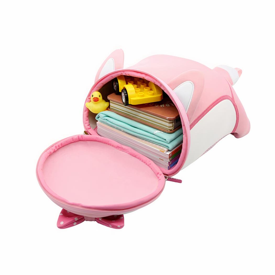 Una original mochila zorro con un lazo y una simpática cabeza de zorro en 3D. La cabeza del zorro se abre para revelar el compartimento principal, para que su hijo pueda llevar todas sus pertenencias. Esta mochila es un accesorio escolar ideal.