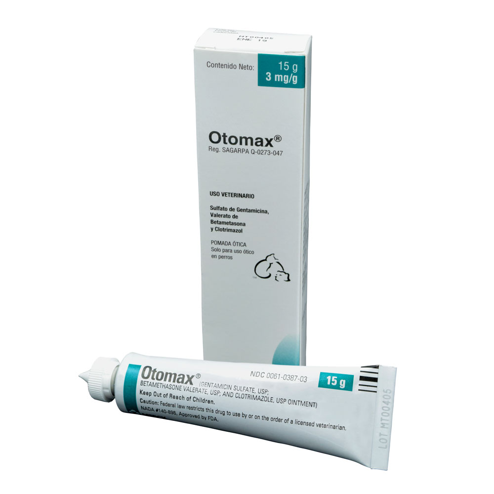 Debe lavarse y secarse completamente el oído externo antes del tratamiento. Remover el material extraño, detritus, costras, etc., con soluciones apropiadas no irritantes. Deber cortarse el pelo en exceso del área a tratar. Después de verificar que el tímpano está intacto, instilar 4 gotas de Otomax® dos veces al día dentro del canal ótico de perros que pesen menos de 15 kg, instilar 8 gotas dos veces al día dentro del canal ótico de perros que pesen 15 kg o más. La terapia debe continuar por 7 días consecutivos.