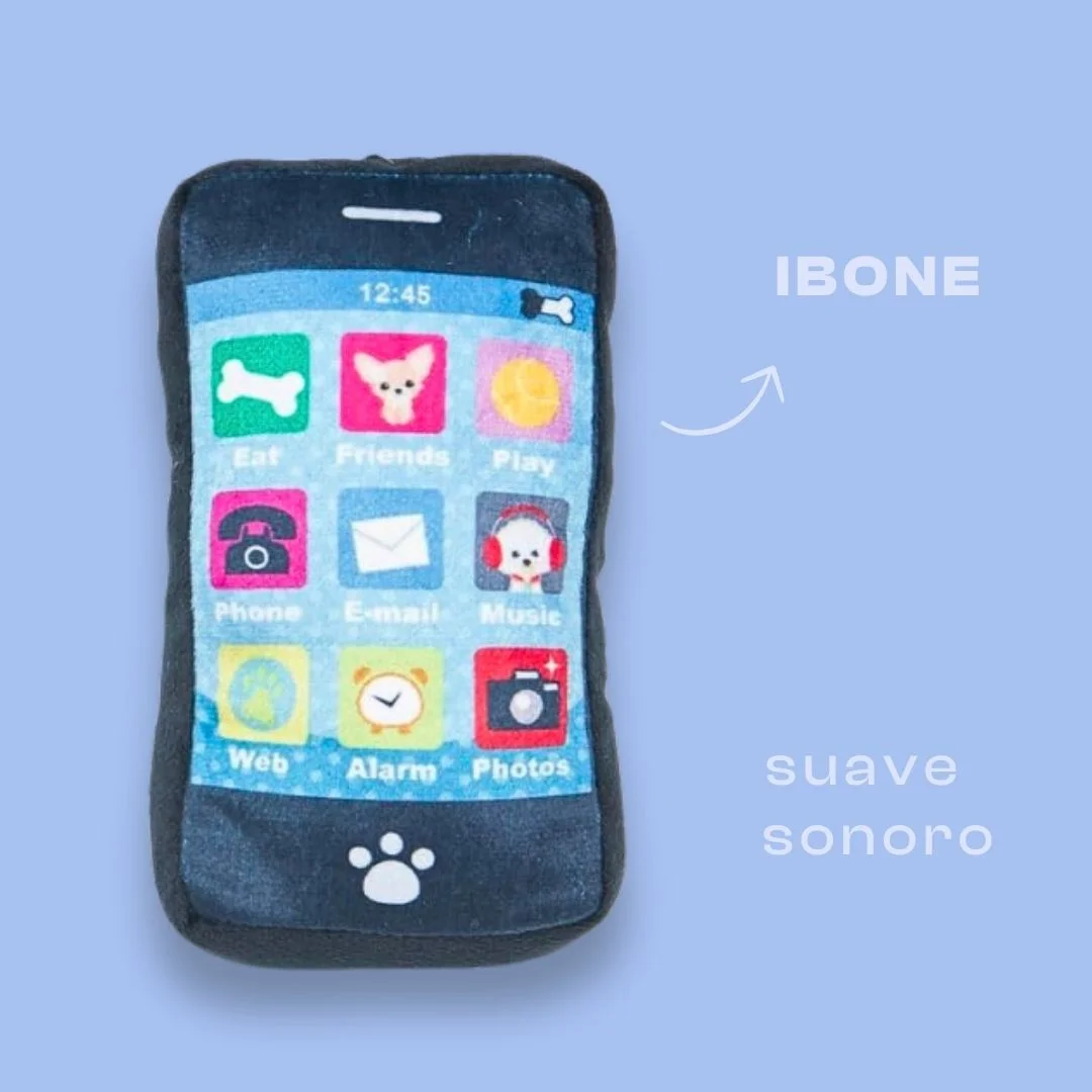 Fabricado en suave felpa y con cuidados detalles, este iBone, con su diseño exclusivo con aplicaciones perrunas, es un accesorio imprescindible para cualquier perro moderno. Tu perro se lo pasará en grande mordiéndolo mientras suena el chirriador.