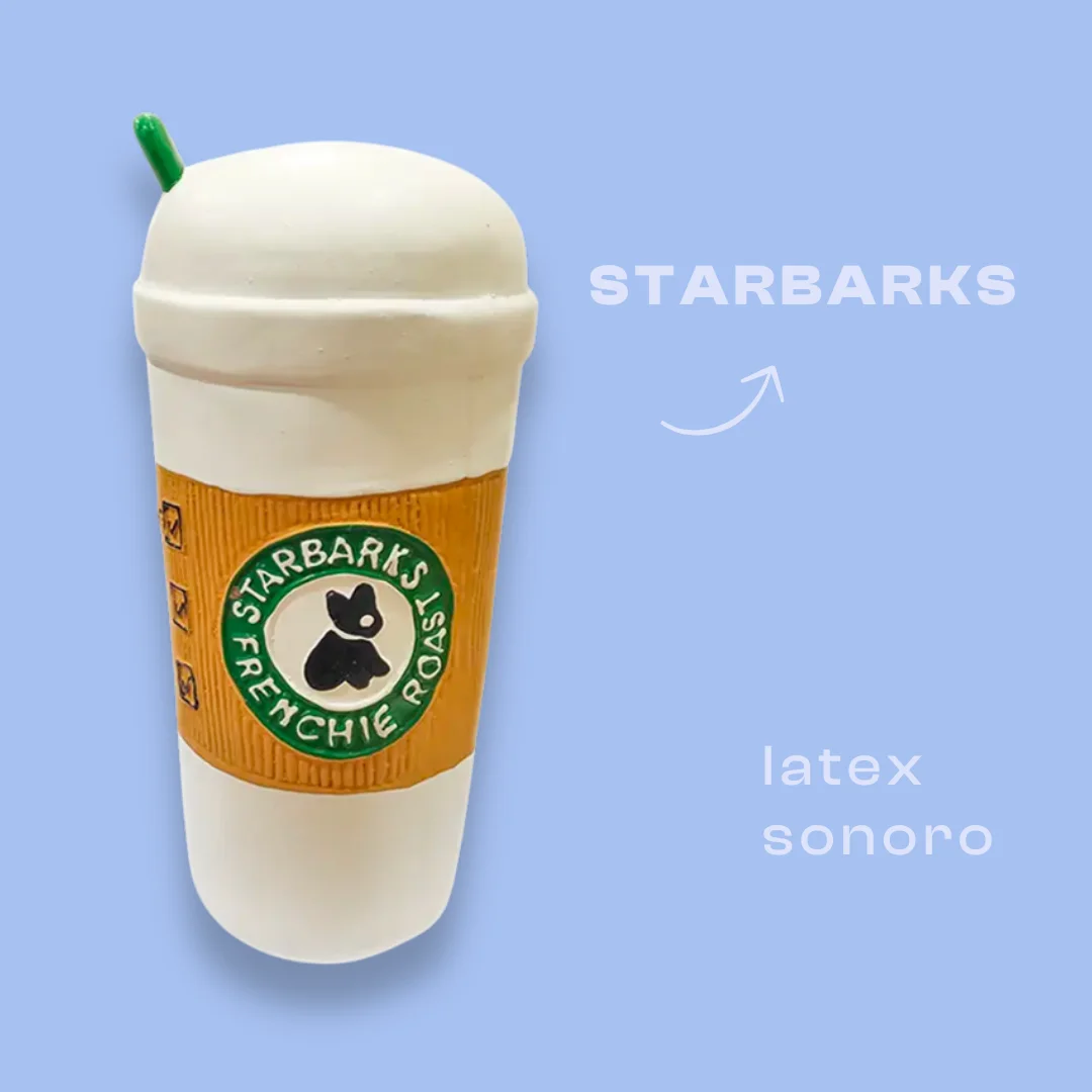 - Contiene dos juguetes que le encantarán: un juguete sonoro en forma de teléfono (porque un buen influencer siempre va pegado a su móvil) y un juguete Café de “Starbarks”, ideal para posar… y morder.