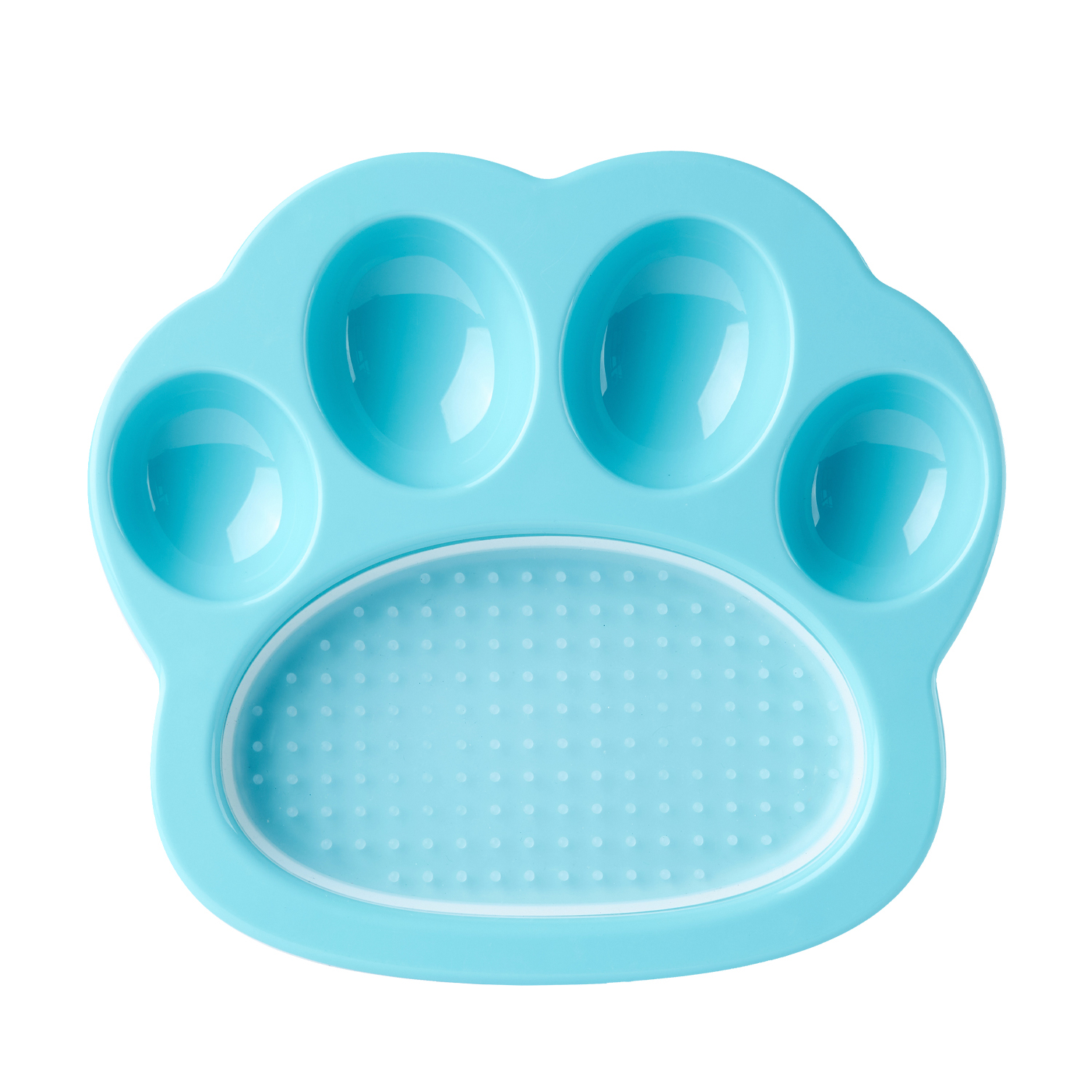 - Plato interactivo de comida para mascotas de alimentación lenta en forma de pata con secciones separadas y almohadilla para lamer texturizada