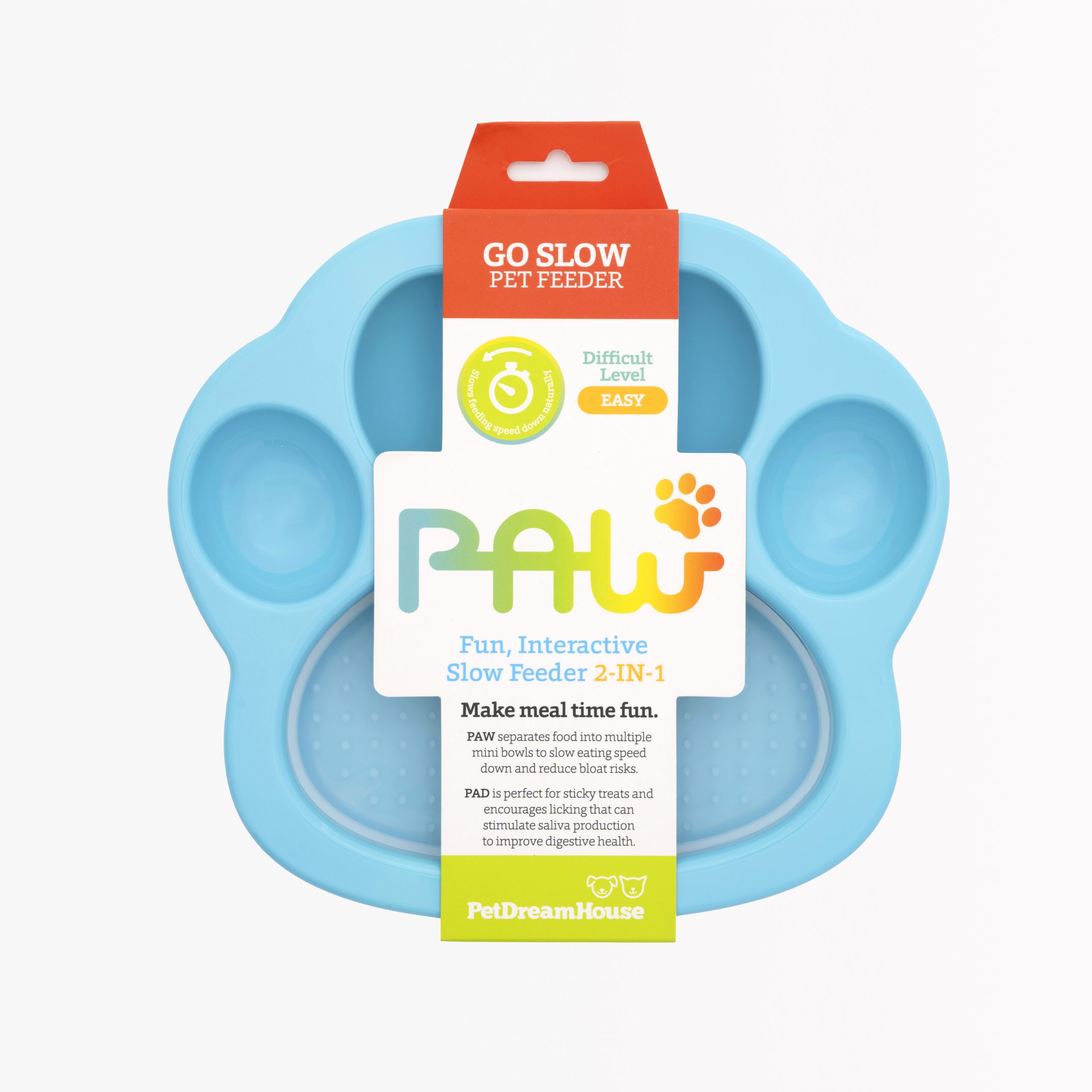 Si tu mascota come demasiado rápido, este plato está especialmente diseñado para ayudar a evitar tragar, ahogarse y la hinchazón con su inteligente diseño en forma de pata. La almohadilla para lamer ayuda a relajarse y tomarse su tiempo para comer y disfrutar de sus comidas.