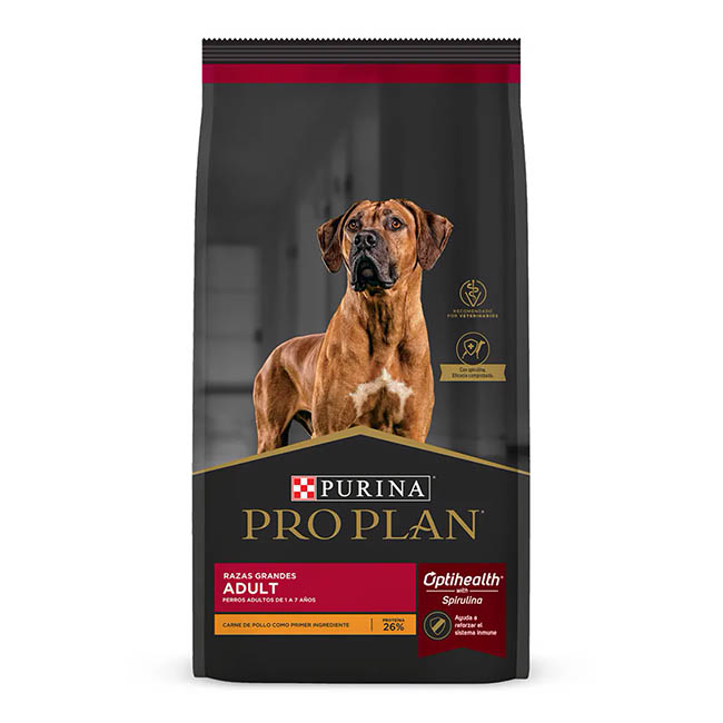 Proplan para Perro Adulto Grande: Provee nutrición de avanzada que ayuda a los perros de razas grandes a mantenerse fuertes y llenos de vitalidad.