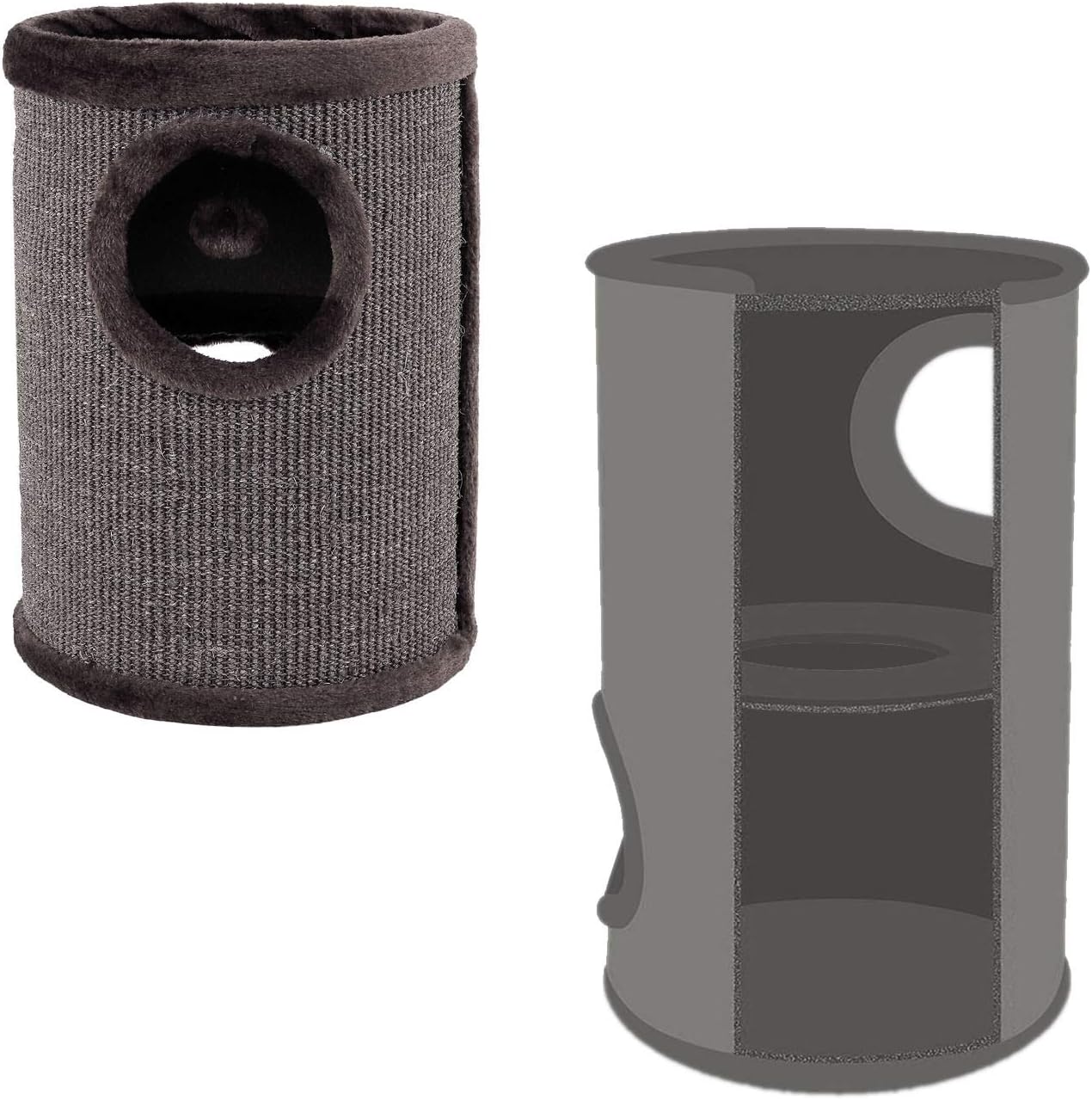 Además de ser un elemento de juego, este rascador se convierte en un oasis de relajación gracias a su plataforma superior revestida en suave peluche. Ideal como lugar de descanso, permite a su gato relajarse y observar su entorno cómodamente. Según el modelo, incluye 2 o 3 entradas acolchadas y una pelota integrada, lo que estimula el instinto natural de juego y caza de su gato, garantizando horas de entretenimiento.