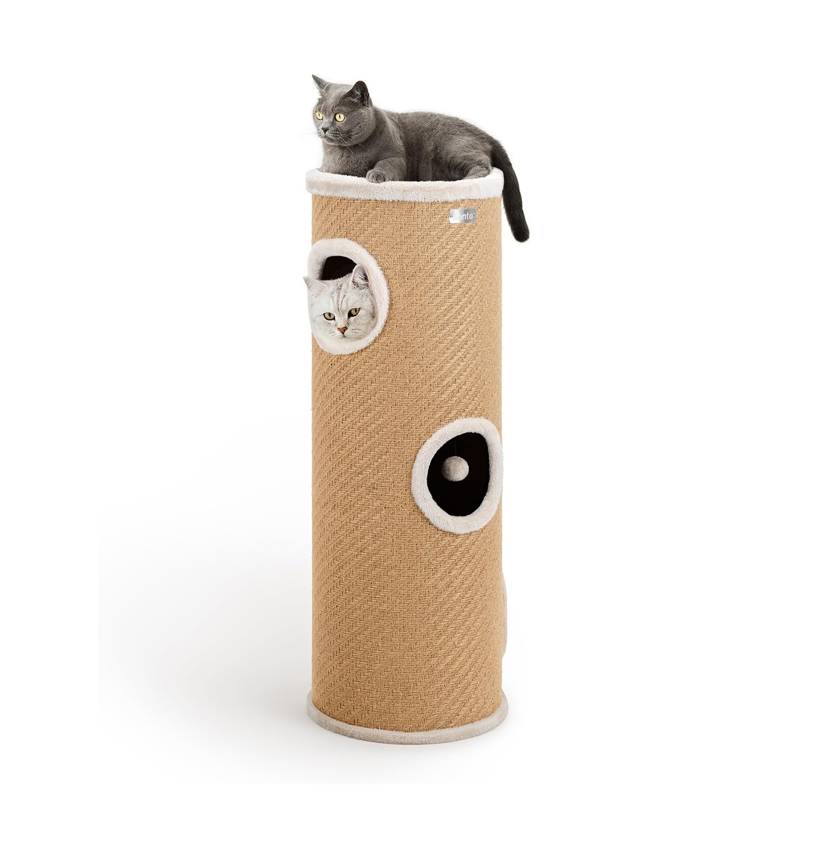 rascador lionto de yute: Descubra el equilibrio perfecto entre diversión y funcionalidad con el rascador lionto de yute. Diseñado para satisfacer las necesidades de su gato, este rascador cilíndrico ofrece una superficie resistente de yute que permite rascar y trepar sin límites. Disponible en tres alturas diferentes, se adapta fácilmente a cualquier espacio de su hogar, como la sala de estar o el estudio, brindando a su felino un rincón ideal para el cuidado de sus uñas y el juego diario.