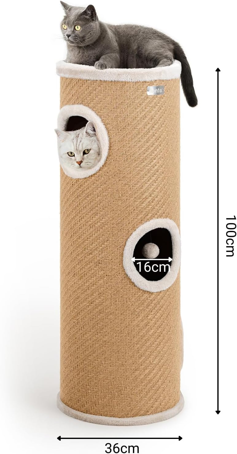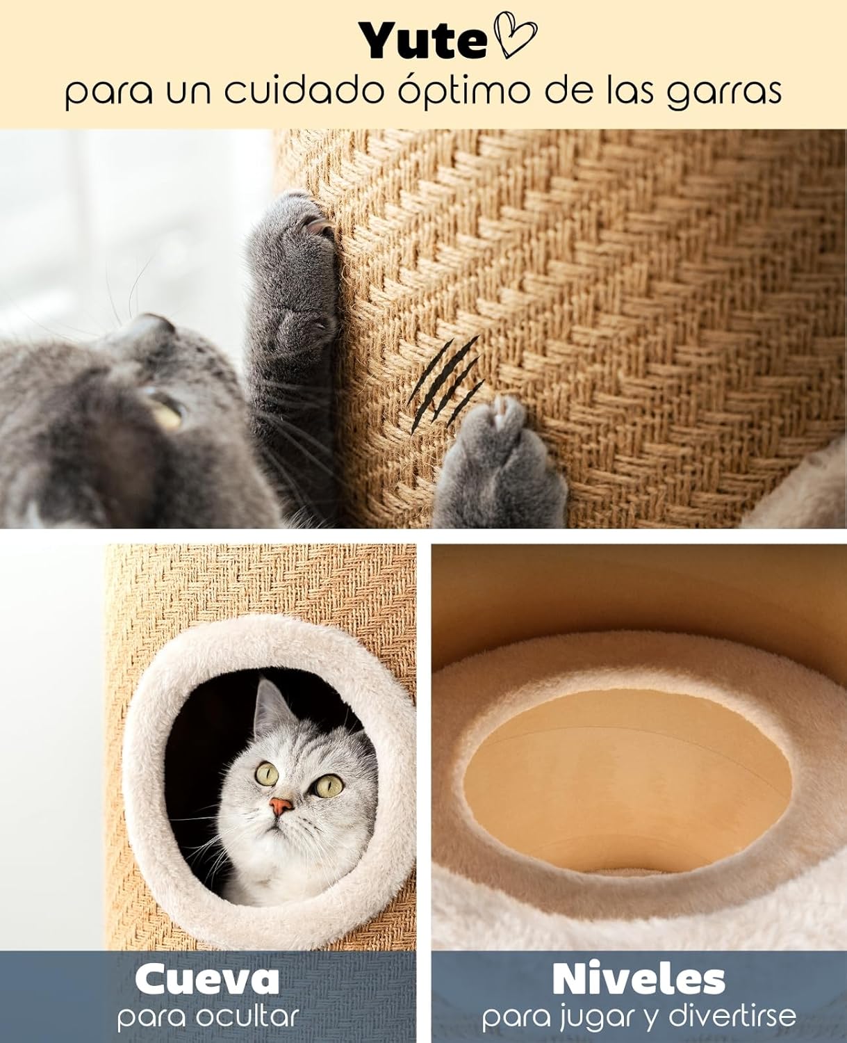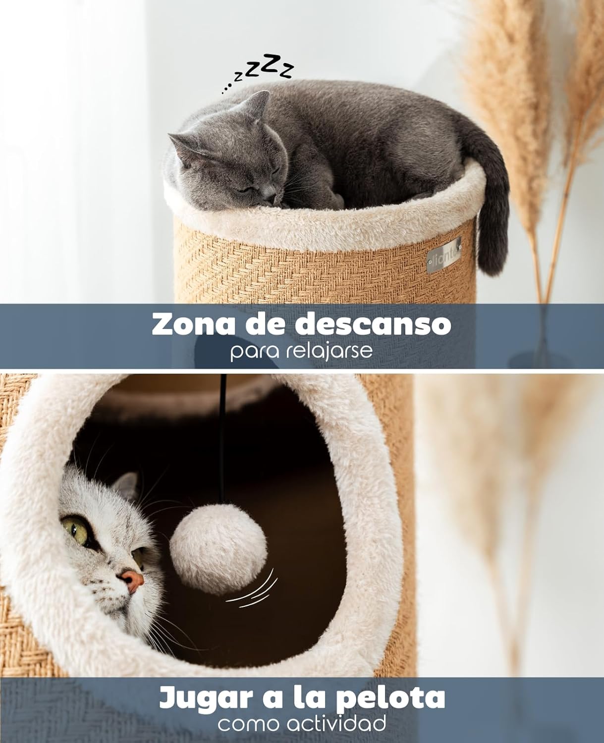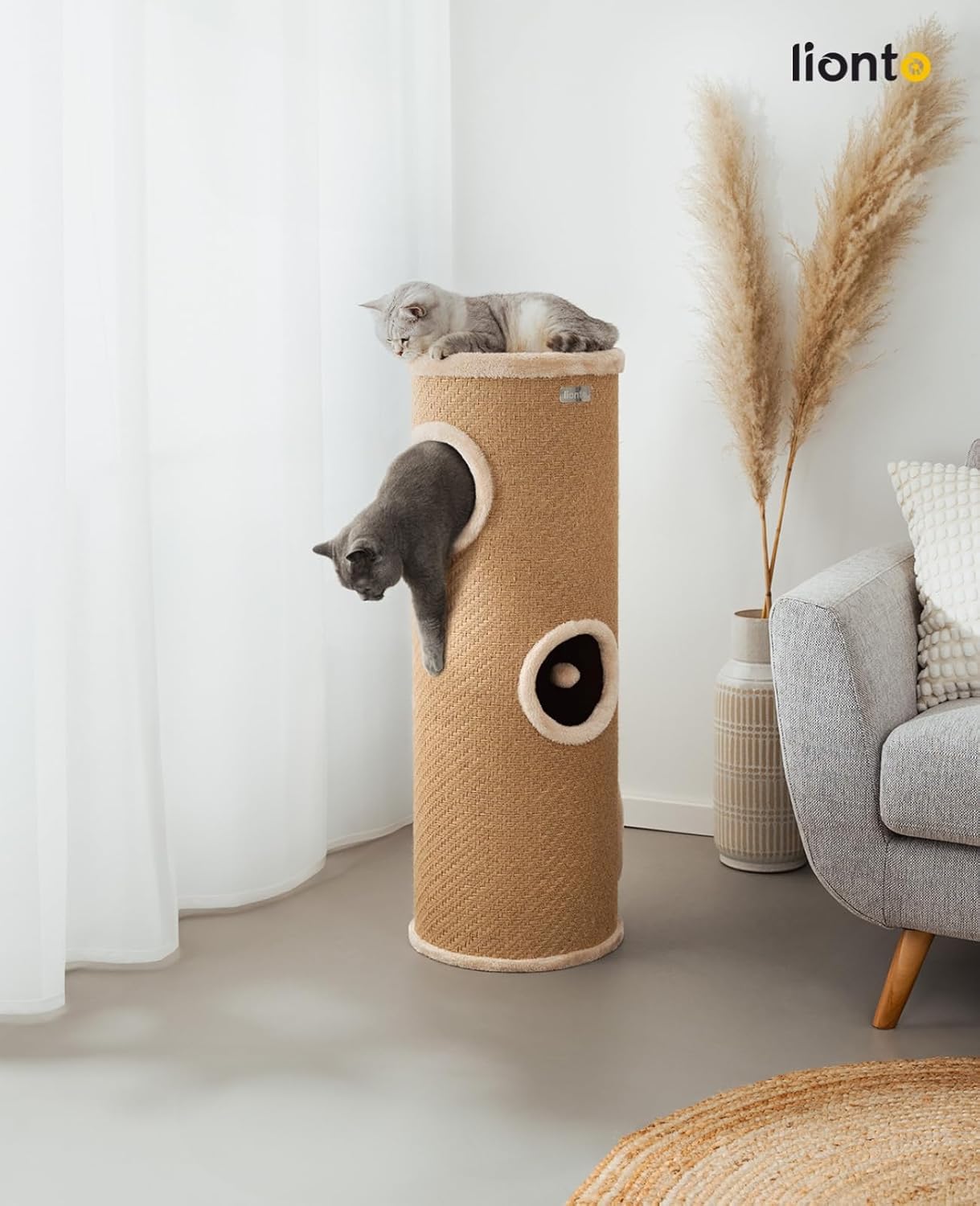 Con una plataforma superior acolchada y rodeada de felpa suave, este rascador también se convierte en un lugar de descanso cómodo para su gato. Además, incluye entradas con bordes de felpa que estimulan el instinto natural de esconderse y cazar, y una pelota de juego integrada para mayor entretenimiento. Gracias a su diseño elegante y versatilidad, el rascador lionto de yute no solo es funcional, sino que también complementa la decoración de cualquier habitación. Fabricado con materiales de alta calidad, este rascador es duradero, fácil de limpiar y garantiza el bienestar de su mascota.